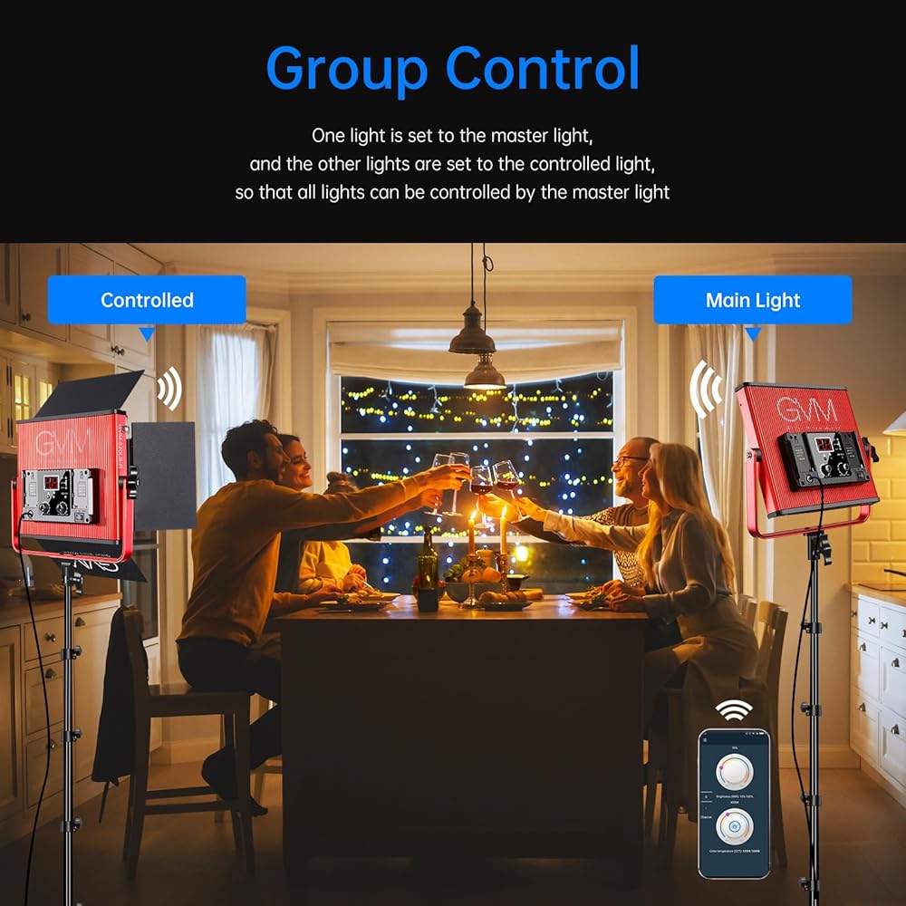 نظام التحكم في التطبيق/الرئيسي والتابع: قم بتنزيل تطبيق "GvmEasily" على هاتفك المحمول، ويمكنك التحكم بسهولة في أي إضاءة فيديو عبر الهاتف. كما أن لديها وظيفة التحكم اللاسلكي الرئيسي والعبد. يمكن تعيين كل لوحة LED كمصباح فيديو رئيسي للتحكم في نفس سلسلة مصابيح الفيديو LED.