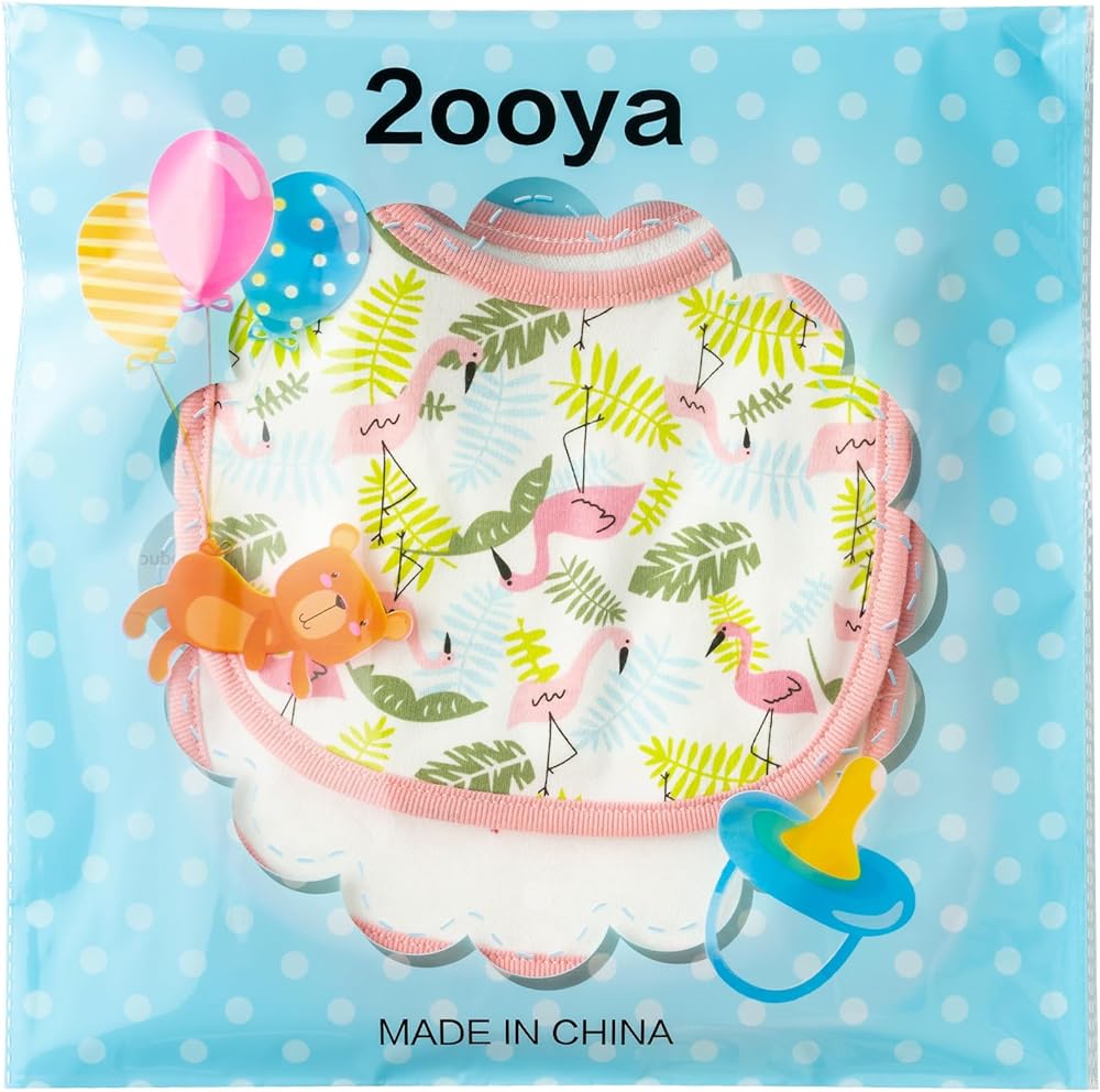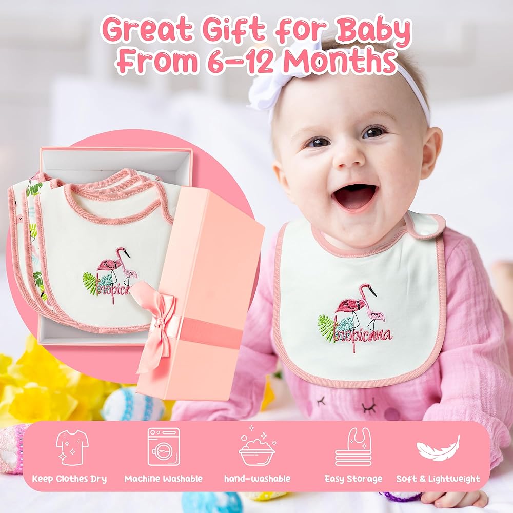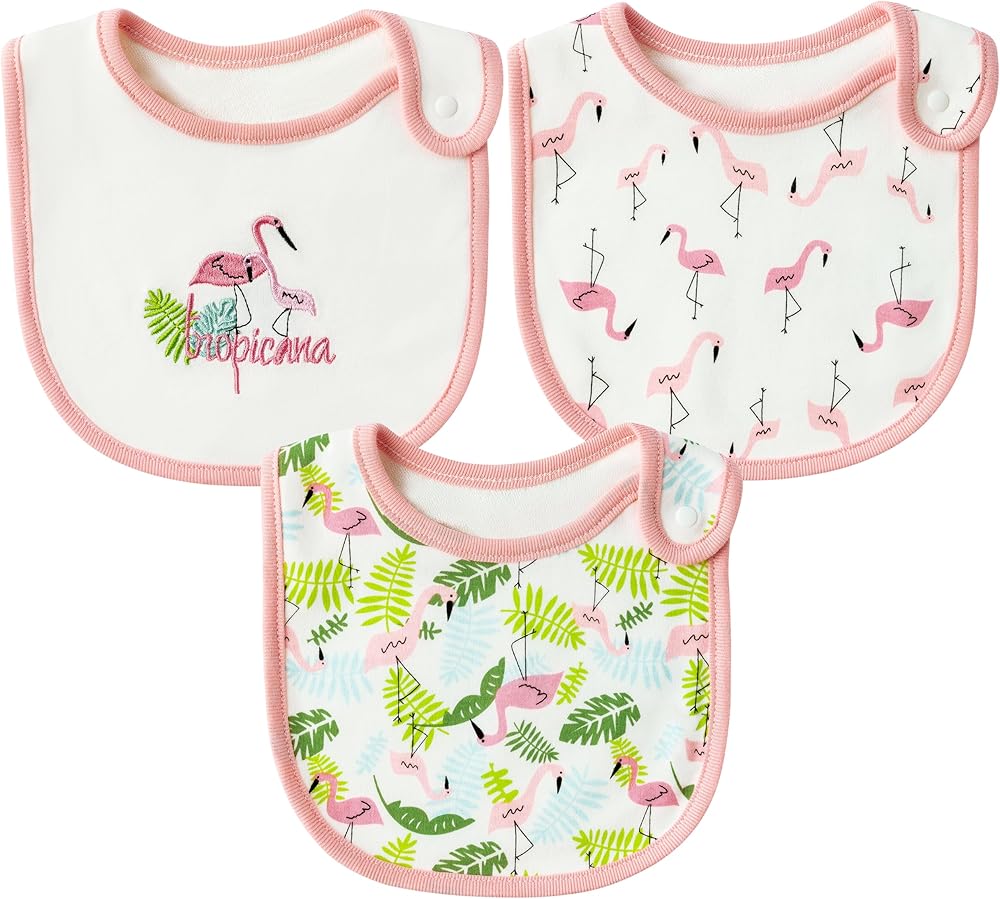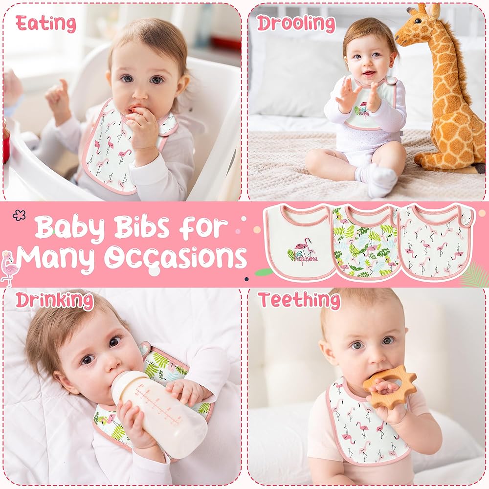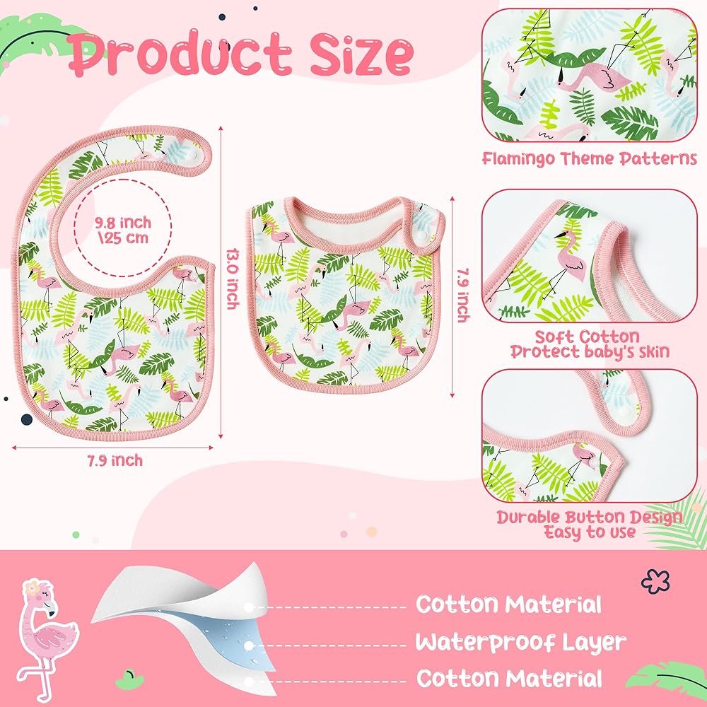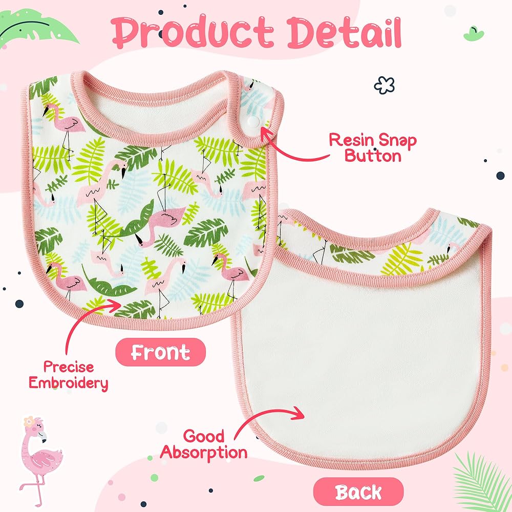 مرايل أطفال قطنية قابلة للامتصاص من 2ooya - مرايل طعام لحديثي الولادة بنمط الفلامنغو الوردي، مرايل تغذية للرضع مع أزرار من الراتنج، مجموعة مريلة للأطفال الصغار، دعائم صور لطفلة صغيرة (6-12 شهرًا)