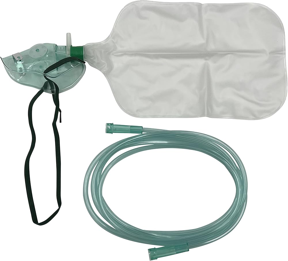 1 pediatric size elongated non-rebreather oxygen mask with 1000ml bag and 6.8 feet of crush resistant tubing