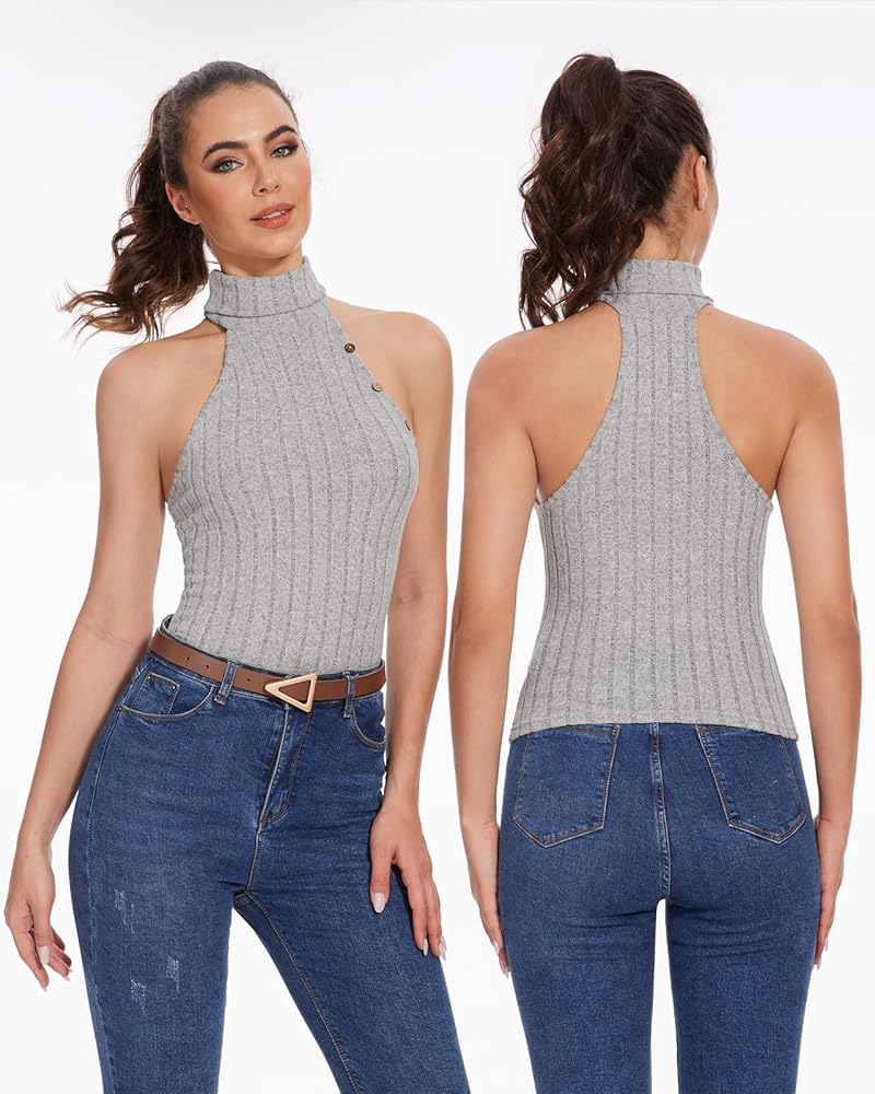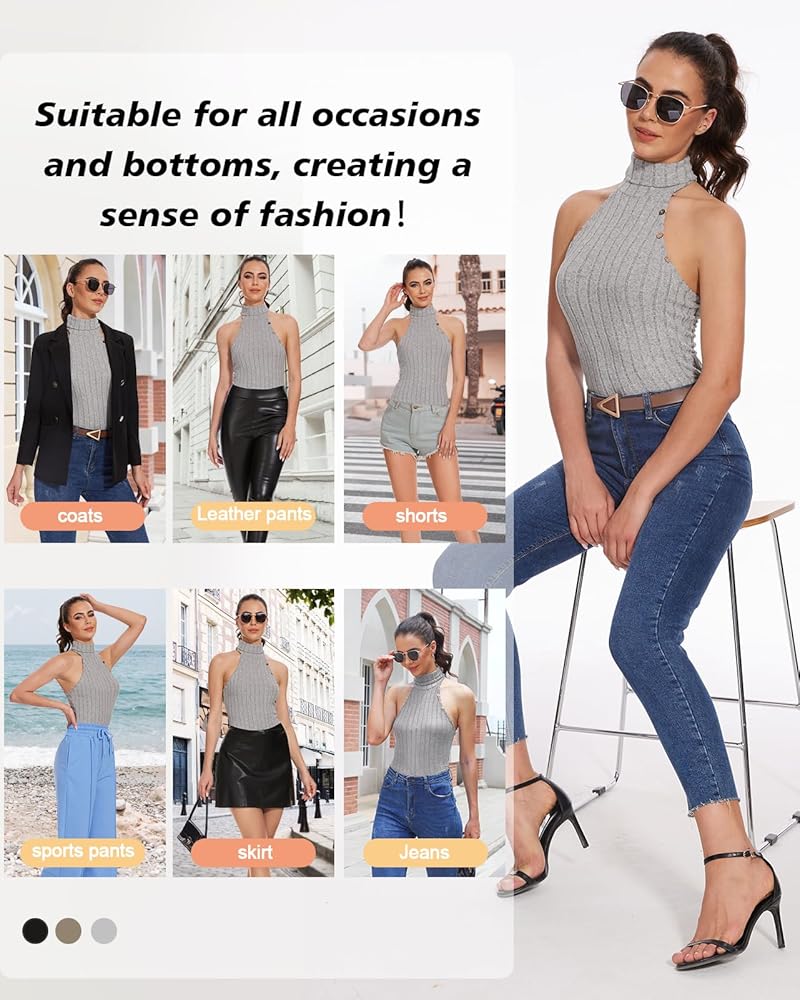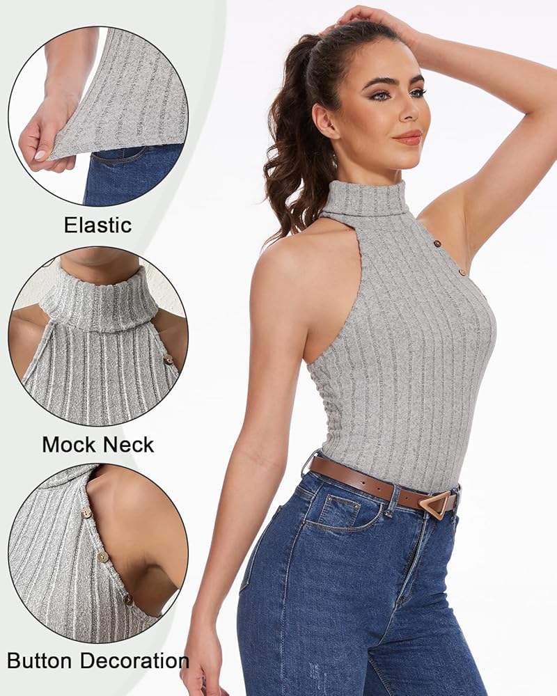 • ✫Match✫- The unique design of mock neck sleeveless top is lightweight and slimming, knitted fabric, stretchy and solid color. Can be paired with leggings or jeans for casual charm.
