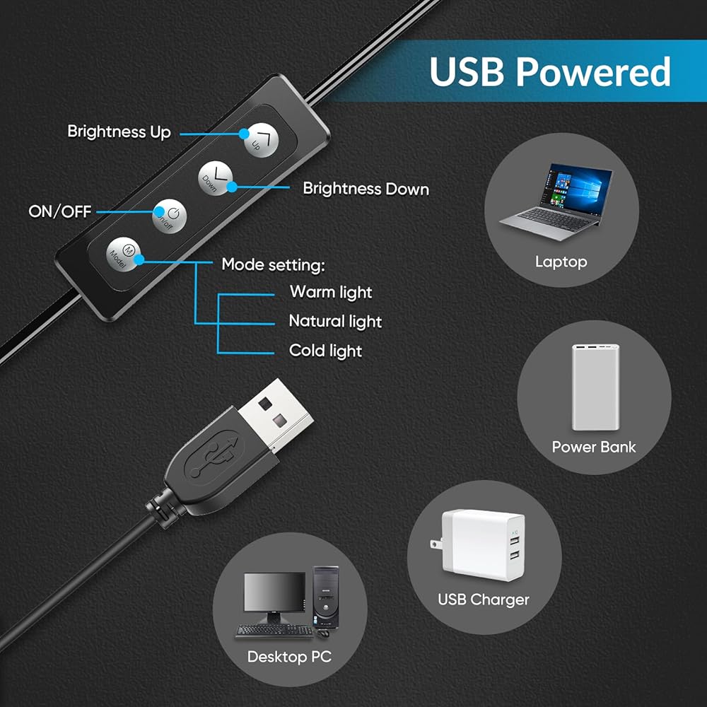 • 💡【مصدر طاقة USB وتوفير الطاقة】: يتم توصيل ضوء الشاشة هذا ببساطة بجهاز الكمبيوتر الخاص بك أو أي جهاز آخر يعمل بمنفذ USB-A للحصول على إضاءة فعالة. إذا كان منفذ USB-A يتمتع بمعدل نقل طاقة منخفض، فمن المستحسن توصيل محول 5 فولت - 2 أمبير (غير متضمن) للحصول على السطوع الكامل. يوفر لك التصميم منخفض استهلاك الطاقة حل إضاءة مستقرًا وصديقًا للبيئة.