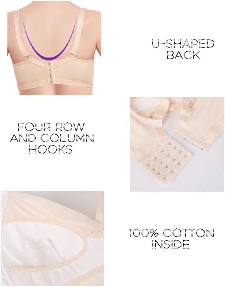 • DESIGNED WITH COMFORT AND SUPPORT IN MIND – Underwire free, lightly padded, cotton, nursing bra with a touch of lace. With thick (3/4 inch) adjustable shoulder straps, a U shaped back design and four rows of hooks for added support.