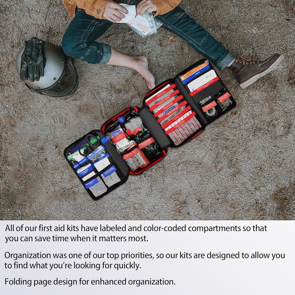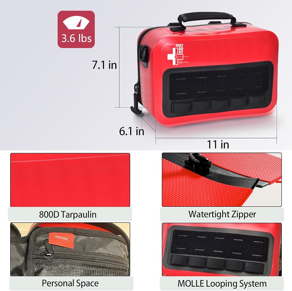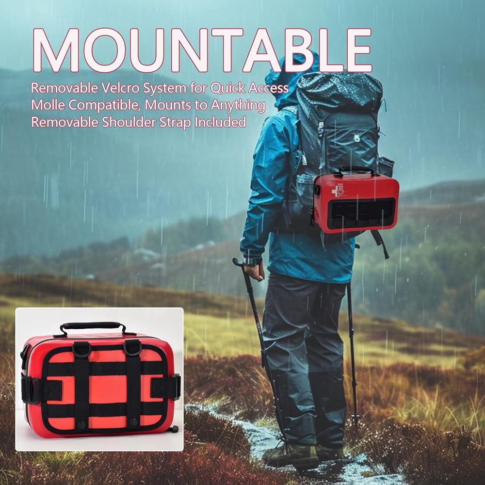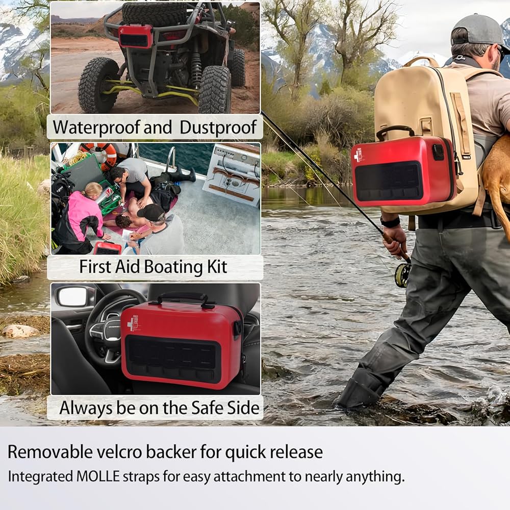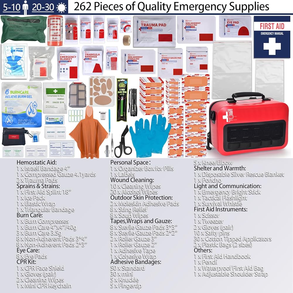 مجموعة الإسعافات الأولية المقاومة للماء مع مقصورات منظمة جيدًا، ومجموعات الإسعافات الأولية مع نظام مولي قابل للإزالة للسيارات والقوارب والشاحنات وحالات الطوارئ الخارجية - مجموعات كبيرة للإسعافات الأولية للصدمات - 262 قطعة