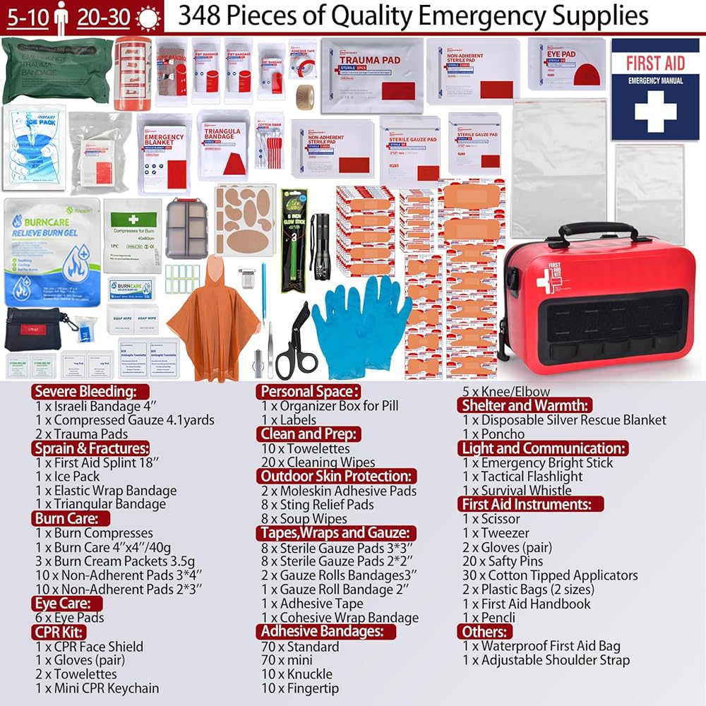 ⏫【ترقية مجموعة الإسعافات الأولية الشاملة】هذه مجموعة إسعافات أولية شاملة عالية الجودة تمت ترقيتها بواسطة فريق من المحترفين، وتحتوي على 262 قطعة من مستلزمات الإسعافات الأولية الأساسية للإصابات اليومية والحروق والالتواء والسقوط والنزيف والمزيد. في الهواء الطلق، في المنزل أو في السيارة، تحتوي مجموعة الإسعافات الأولية شديدة التحمل لدينا على ما يكفي من الإمدادات لعلاج عائلة أو مجموعة من الأصدقاء في حالات الطوارئ.