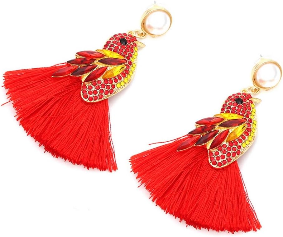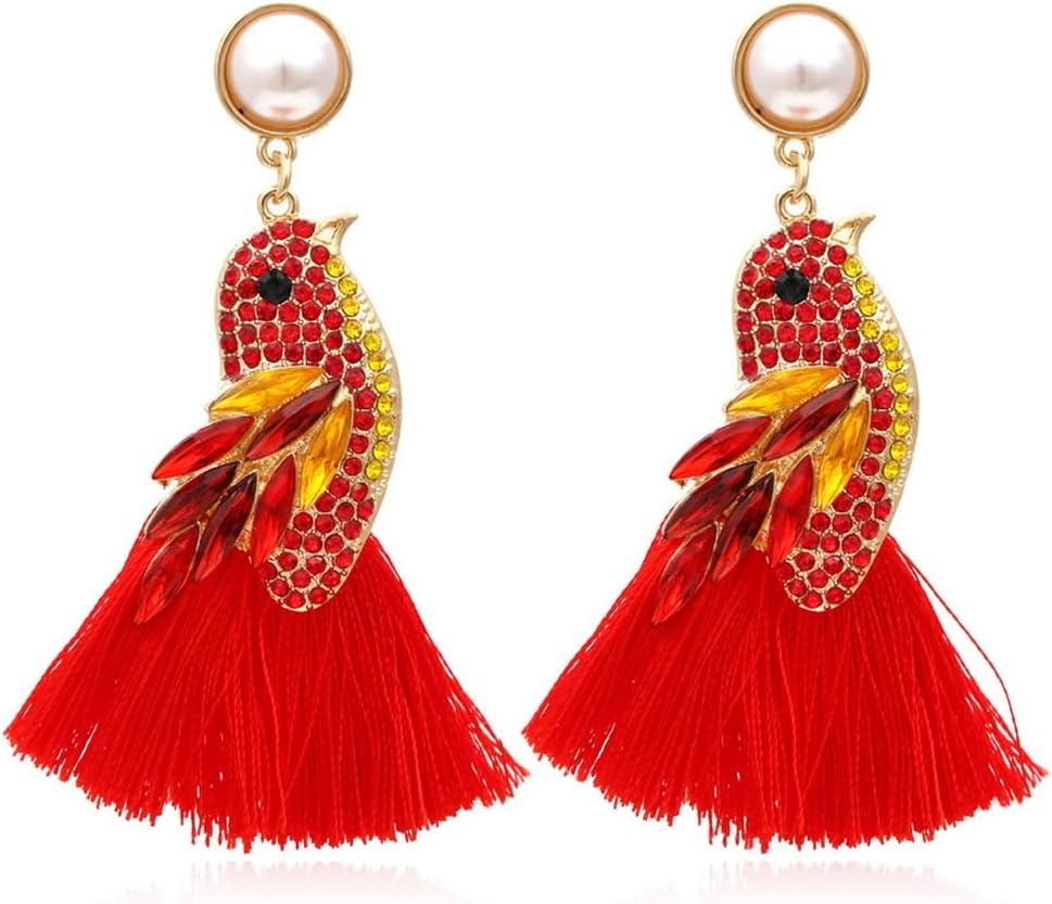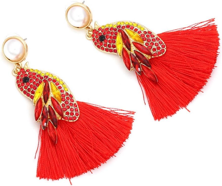 تصميم فريد - أقراط ببغاء من حجر الراين الملون - أقراط ثريا متلألئة على الطراز العتيق مرصعة بكريستالات مبهرة وبريق لافت للنظر، من المؤكد أن هذا الزوج من الأقراط ذات الطراز المزخرف الفاخر سيجذب انتباه الجميع أينما ذهبت!