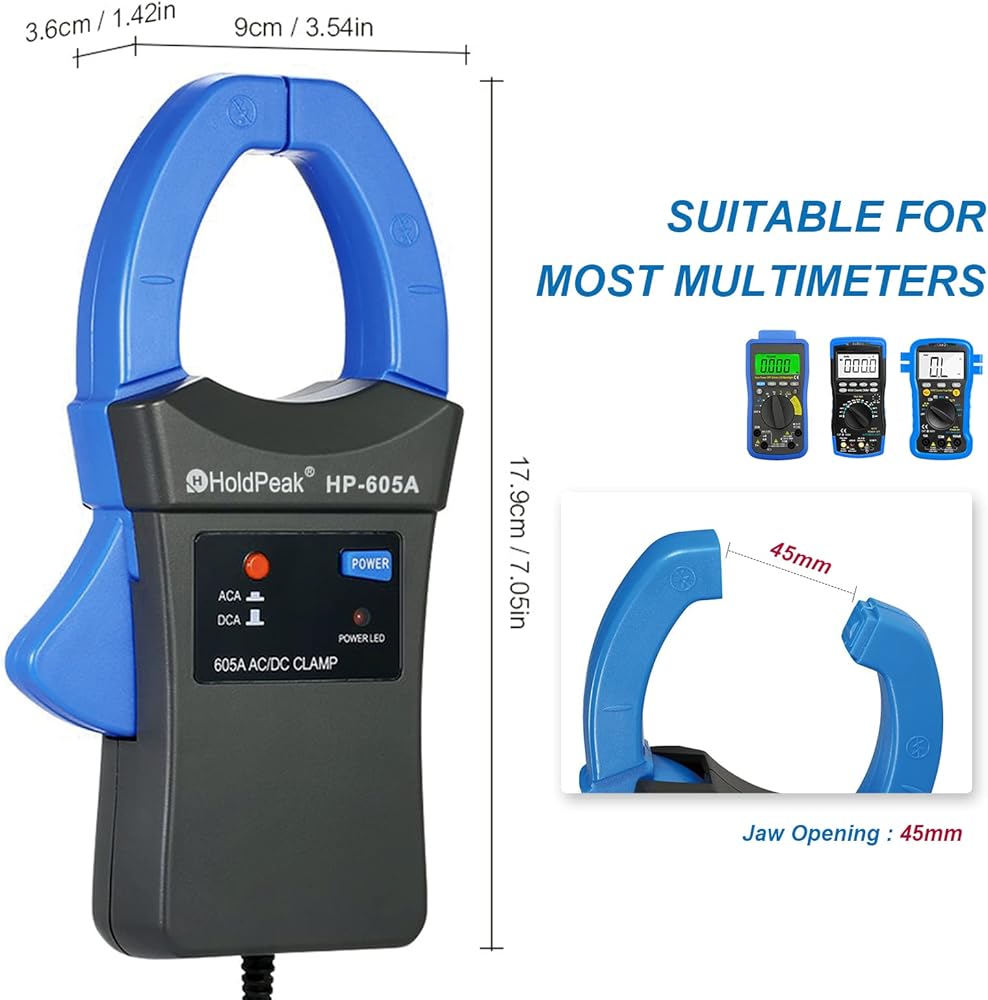 🗜【Easy to Measure】Open jaw design, the maximum diameter of the jaw is 45mm, it can be easily clipped into the wire, and the current in the loop can be easily measured without destroying the original circuit.