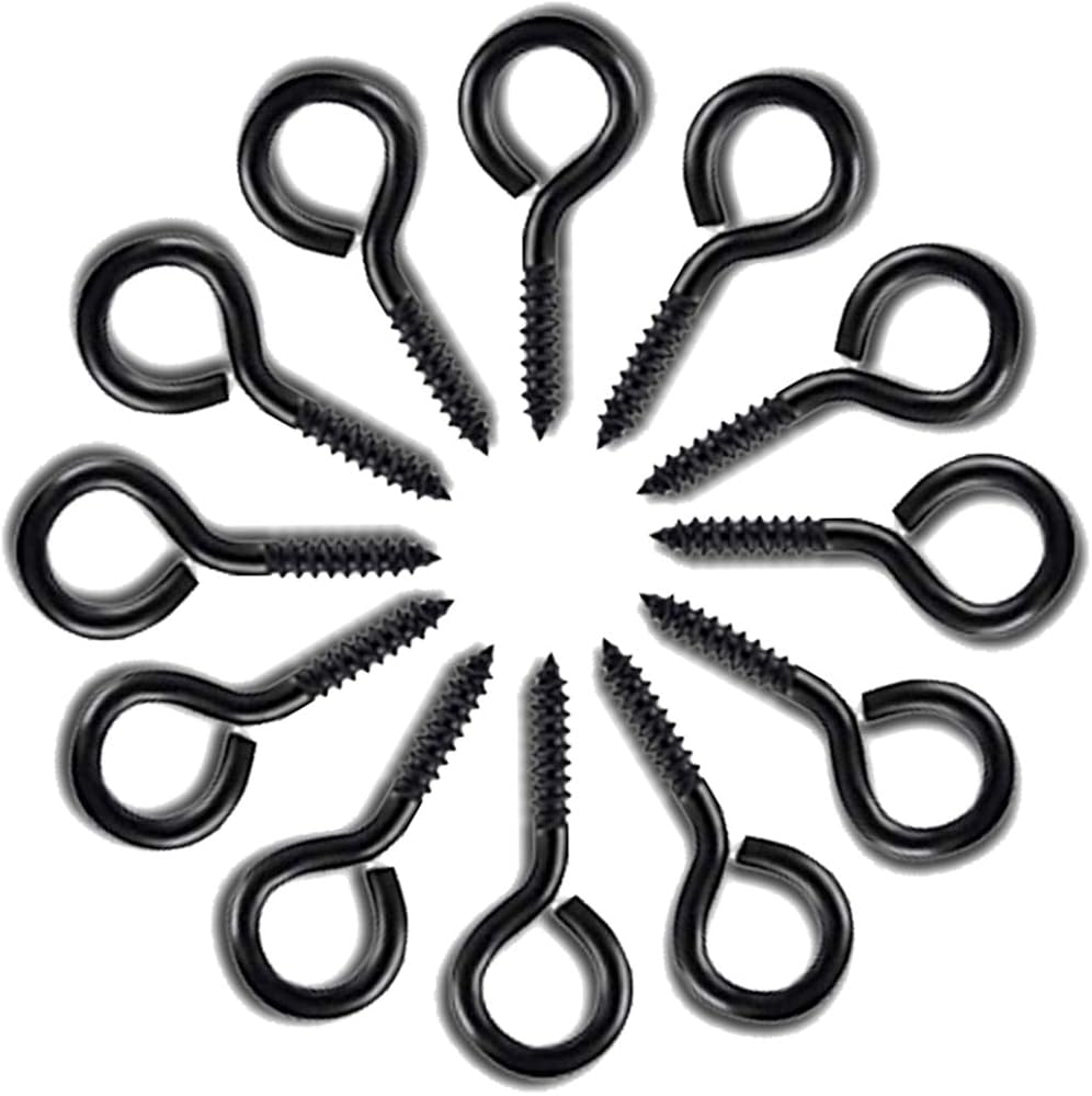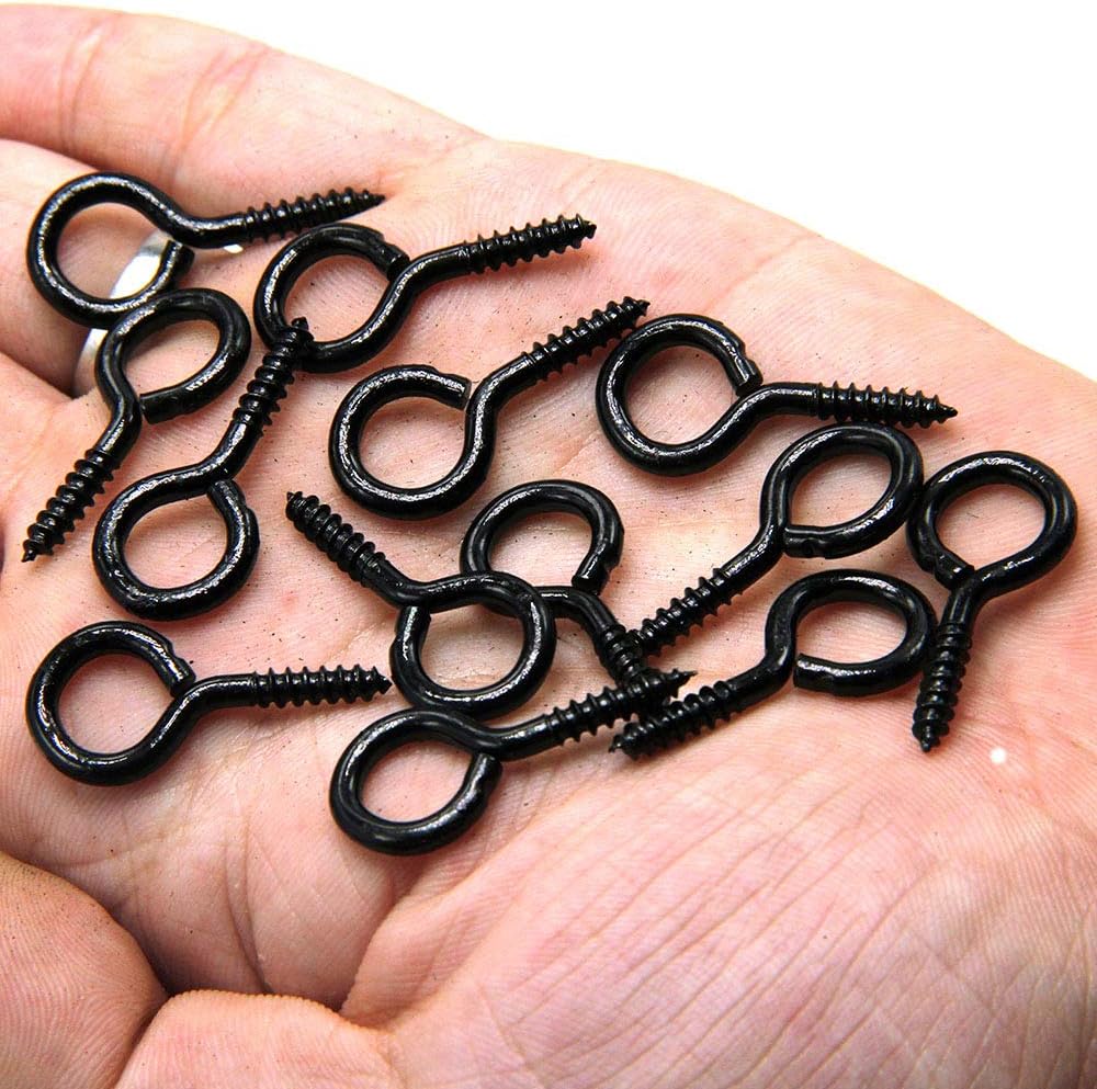 ECKJ خطافات عين لولبية صغيرة 50 قطعة 1.1 بوصة خطاف معدني مطلي بالزنك على شكل عين خطاف برغي ذاتي التنصت على شكل حلقة خطاف دائري أسود لتعليق المجوهرات والحرف اليدوية والحلي وفلين النبيذ بنفسك