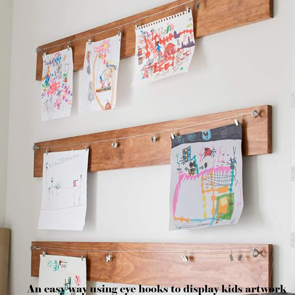 خطافات لولبية على شكل عين، مثالية لتعليق الأشياء من الجدران، وهي مصممة خصيصًا للاستخدامات الخفيفة.