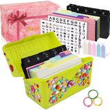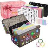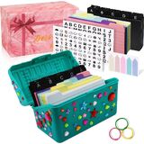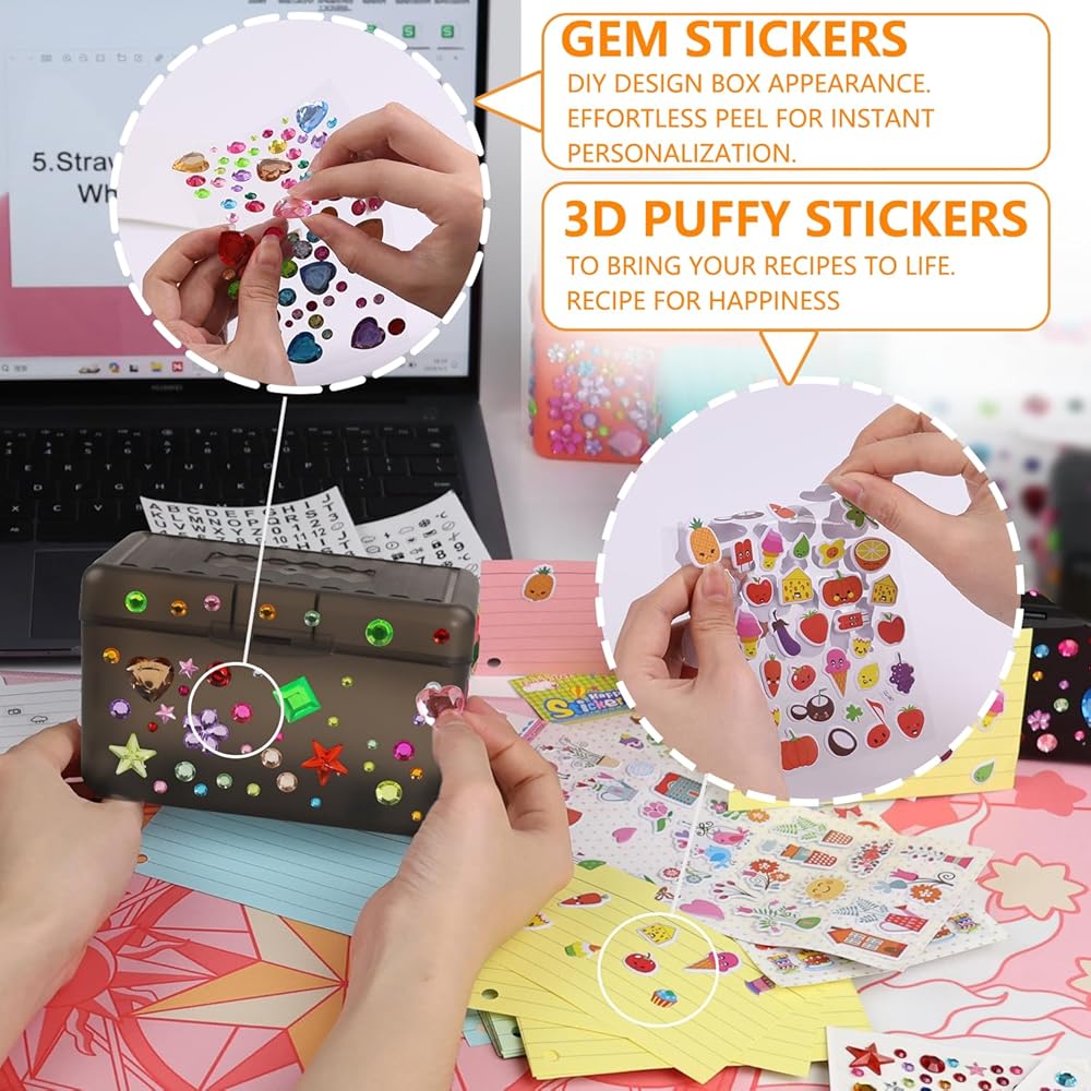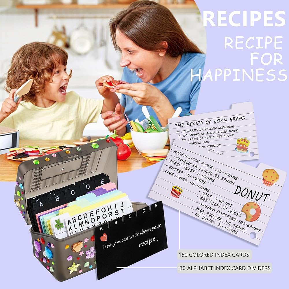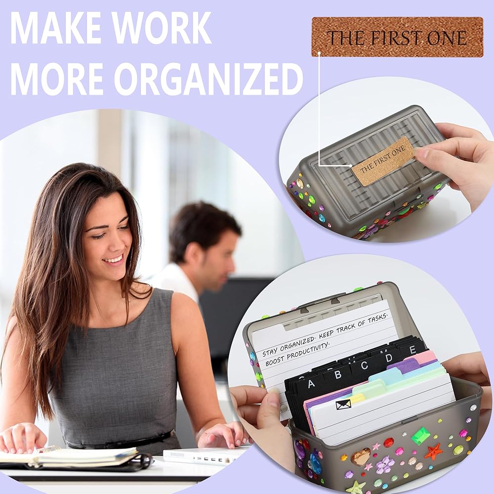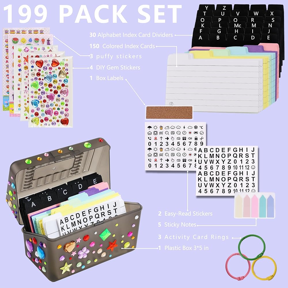 • 💼مجموعة صندوق حامل بطاقات INDEX - تتضمن 30 فواصل لبطاقات الفهرسة الأبجدية، و150 بطاقة فهرسة ملونة (6 ألوان)، وملصقين سهلي القراءة، و6 ملصقات للصناديق، و3 حلقات، و5 ملاحظات لاصقة على شكل أسهم، و4 ملصقات جوهرة (قلب أحمر، خمسة- نجمة مدببة، نادي، مربع)، ملصقات منتفخة ثلاثية الأبعاد (كعك، فواكه، زهور) × 3، جميعها منظمة بأناقة في صندوق تخزين أسود مقاس 3x5 بوصة.