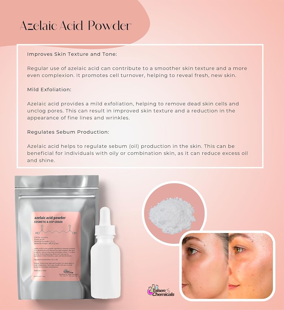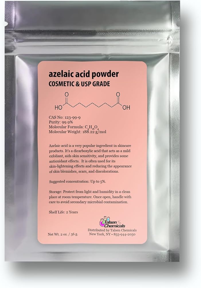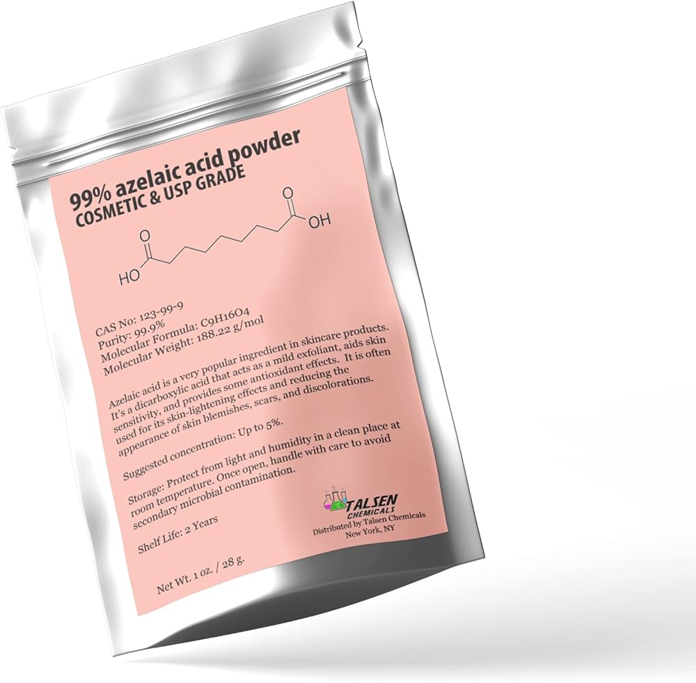 Azelaic Acid is a naturally occurring dicarboxylic acid and a very popular ingredient in skincare products. The buyer assumes all liability for the use of this item. The buyer agrees to not hold the seller or Amazon liable for the use of this item. The buyer agrees to use this item in accordance with all local, state, and federal laws. This is for Laboratory and Scientific use only. Not for Food, Drug, Cosmetic, or Animal use. May be harmful if swallowed. By purchasing this item the buyer agrees that they understand the uses and potential hazards of this material. Shipping will comply with all USPS regulations. Item is NOT regulated by the DOT. USA shipping only.
