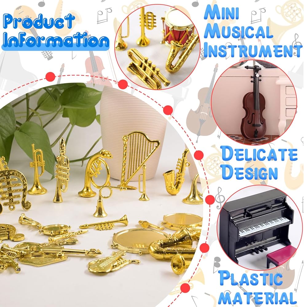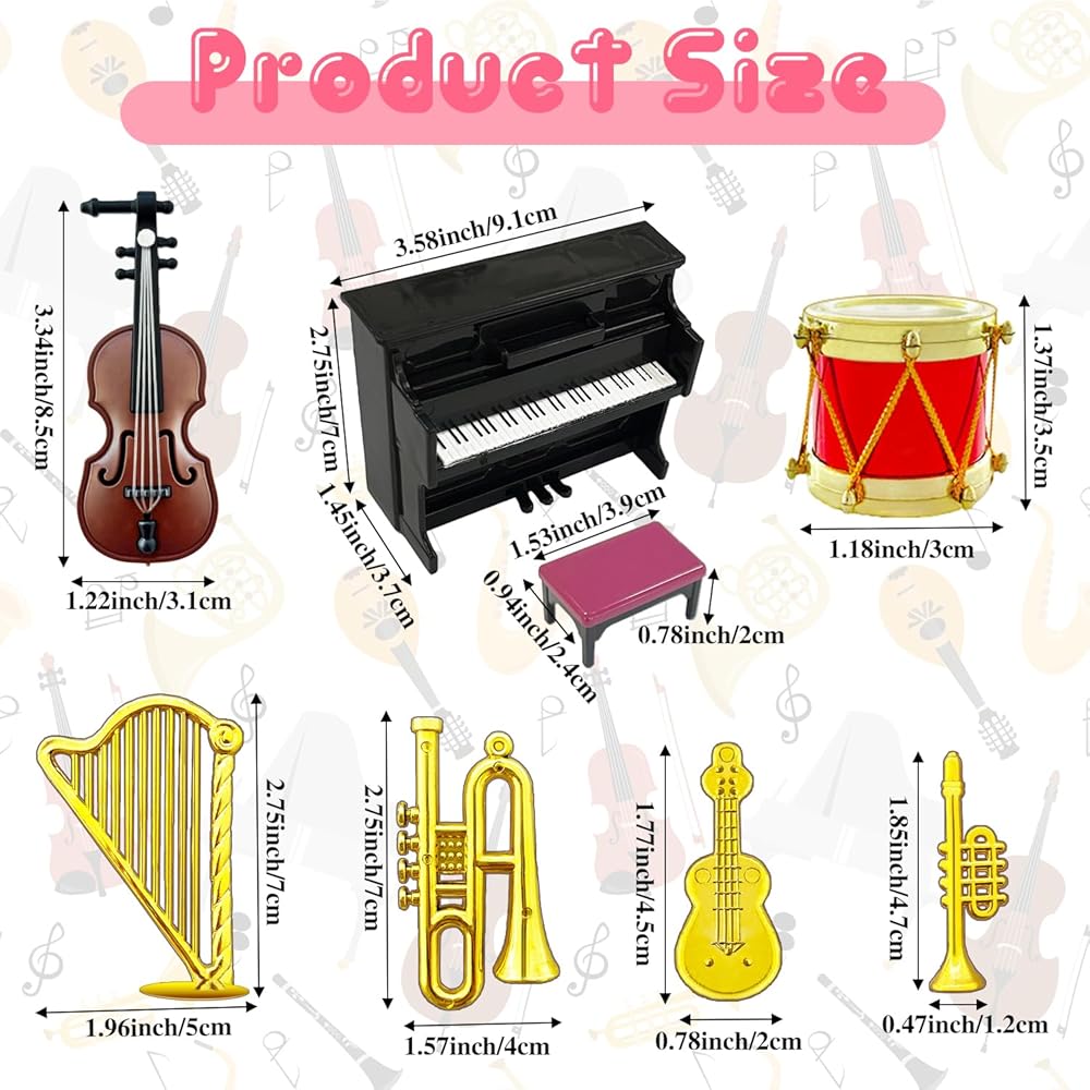 【مجموعة الآلات الموسيقية الصغيرة】تحتوي مجموعة الآلات الصغيرة هذه على 27 قطعة من الآلات الموسيقية الصغيرة التي تقدم مجموعة واسعة من العناصر الموسيقية، بما في ذلك 1 بيانو وكرسي واحد، 1 ورقة موسيقية، 1 جيتار صوتي، 1 جيتار كهربائي، 2 كمان، 2 أقواس و4 طبول، بالإضافة إلى 14 قطعة من مجموعات الآلات الذهبية، مثل التشيلو والقيثارة والساكسفون وما إلى ذلك، مما يشكل مزيجًا غنيًا مثاليًا لتزيين الأعمال الفنية.