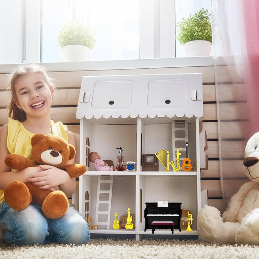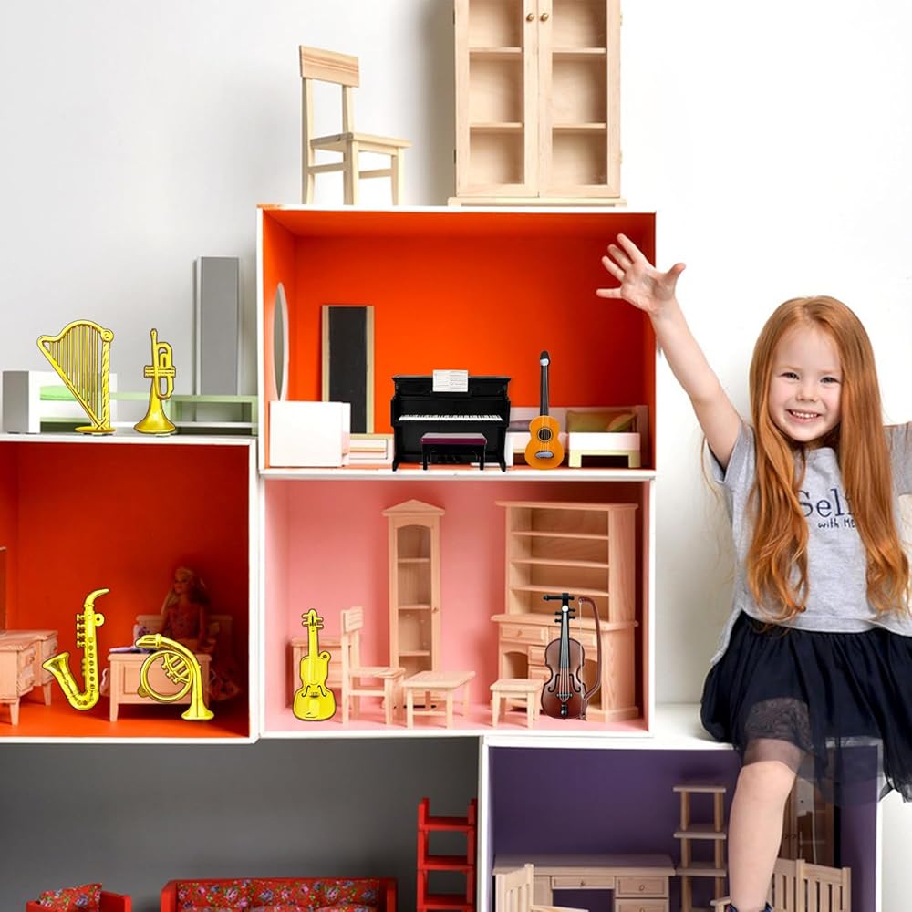 【إكسسوارات بيت الدمى】إن أثاث الغرفة الموسيقية للمنزل الصغير هذا ليس مجرد إكسسوارات رائعة لبيت الدمى، فهذه الآلات الموسيقية المصغرة تعزز الخيال والإبداع وتنمية المهارات؛ إنها أدوات رائعة لتحسين براعة الأصابع والتنسيق بين اليد والعين؛ فهي ليست مجرد ديكورات مبهجة. ولكنه يساعد أيضًا في تعزيز المهارات المعرفية والحركية لدى الأفراد من جميع الأعمار.