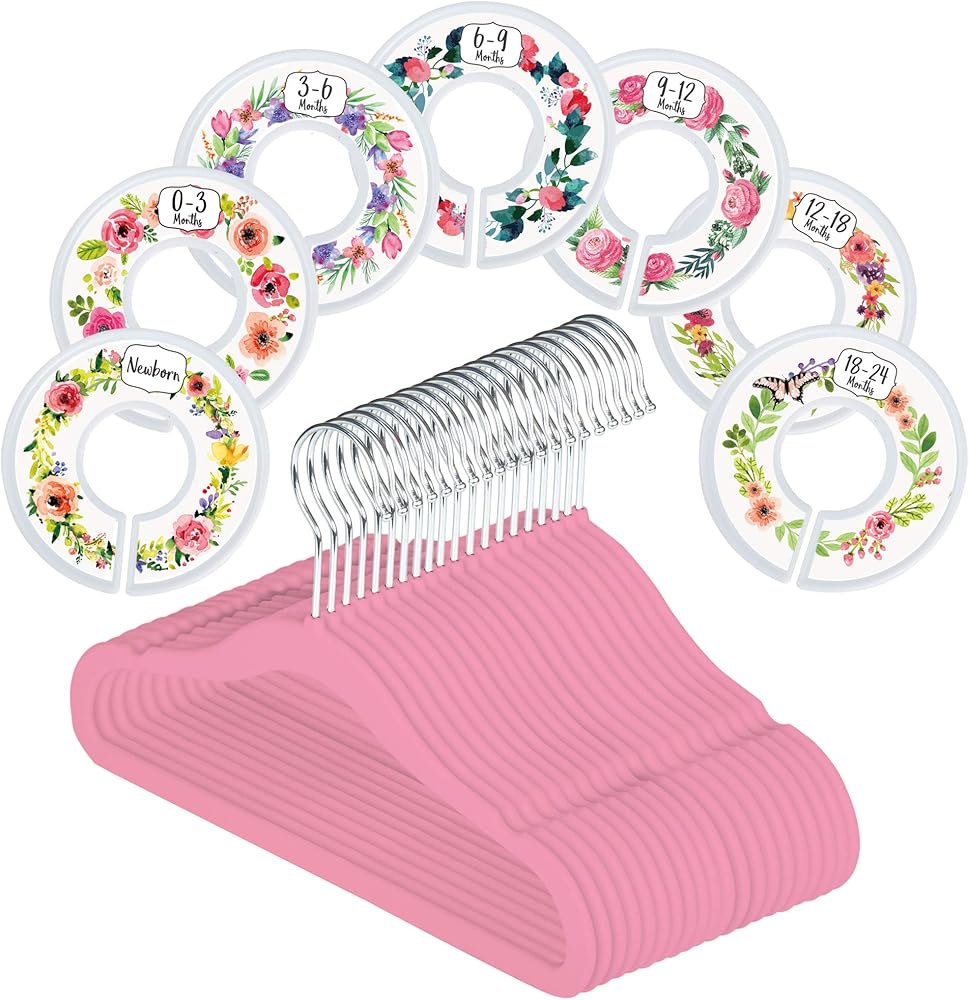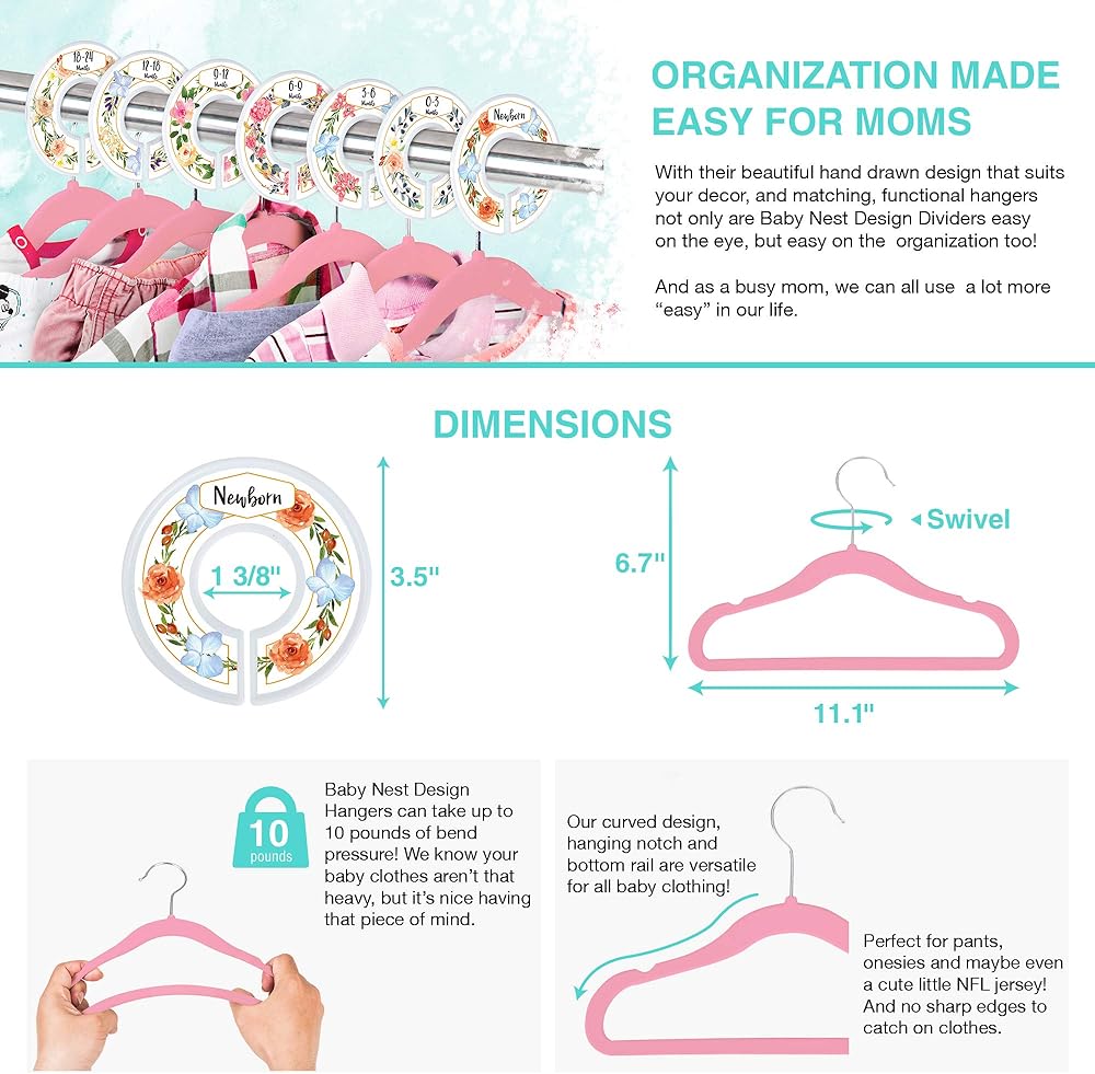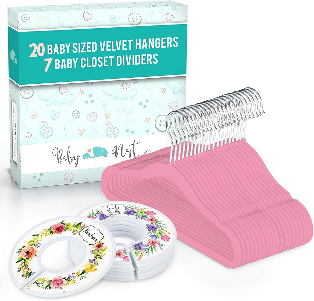 تنظيم سهل: تتضمن المجموعة فواصل لحديثي الولادة حتى عمر 18-24 شهرًا، بالإضافة إلى 20 شماعة مخملية للأطفال و10 مشابك للسراويل، جميعها مغلفة بأناقة في صندوق هدايا لطيف.