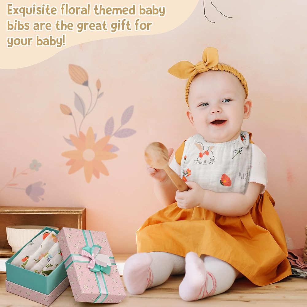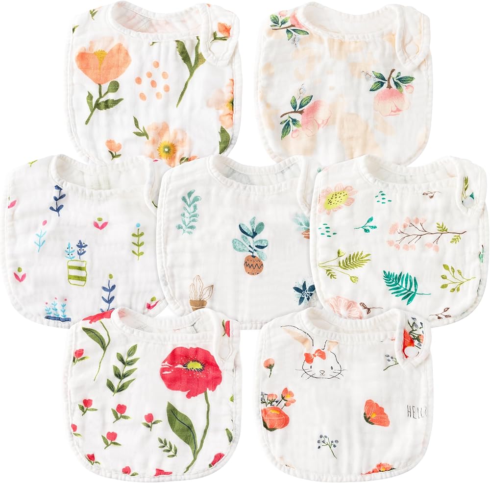مجموعة قيمة: تحتوي العبوة على 7 قطع من مرايل الأطفال المصنوعة من قطن الموسلين، وكمية كبيرة لتلبية احتياجات طفلك اليومية. كل مريلة مطبوعة بنمط زهور مختلف، مثل الزهرة الوردية والنباتات الخضراء والزهرة الحمراء والزهرة البرتقالية والبتونيا، كل هذه العناصر يمكن أن تجذب انتباه الطفل.