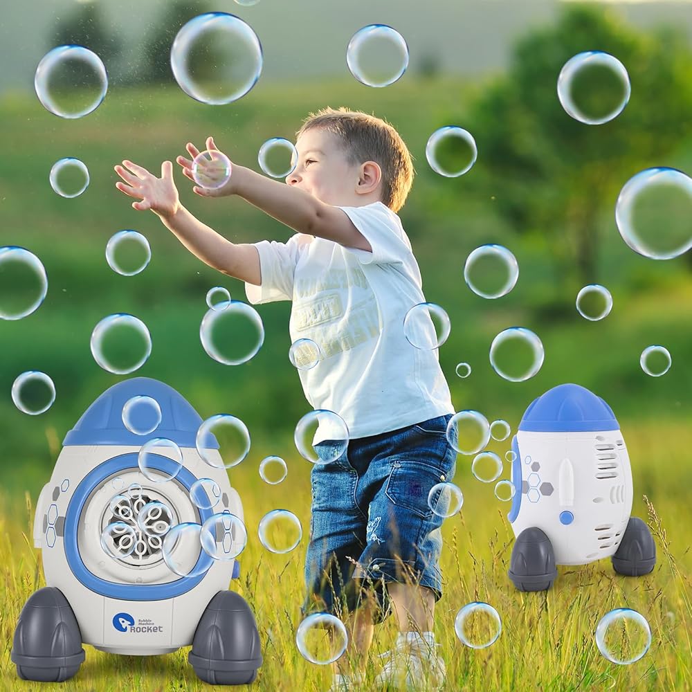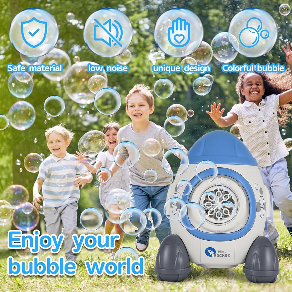 Bubbles Machine for Kids Toddlers Age 1 2 3 5 Years Old Birthday Valentines Day Gifts Unique Cute Baby Outdoor Blue Rocket Bubble Maker Toya Outside Toy Bath Bathtub Blower Game Little Girl Boy Easter