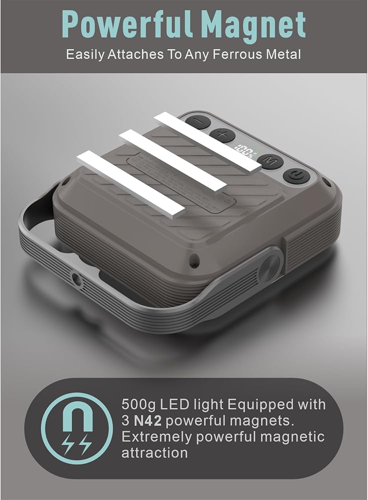 【IPX5 وPSE ومغناطيس قوي وحامل ثلاثي القوائم قابل للفصل】 فانوس التخييم LED هذا مقاوم للماء والغبار بدرجة IPX5، ومجهز بـ 3 مغناطيسات قوية. يأتي المنتج مزودًا بمسامير عالمية للكاميرات، والتي يمكن توصيلها بحامل ثلاثي الأرجل. كما يمكن وضعه على سطح المكتب بإضاءة ثابتة من زوايا متعددة للحصول على شهادة PSE.