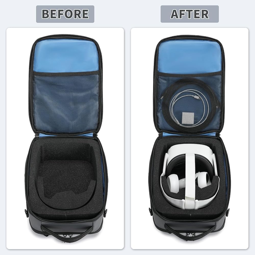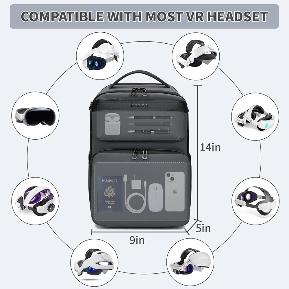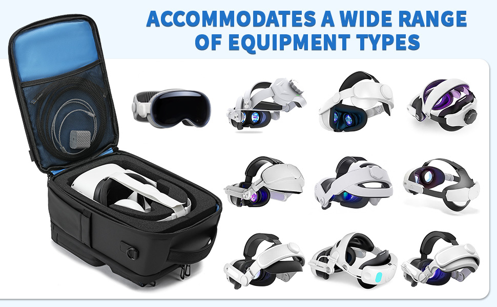 • حقيبة حمل سماعات الواقع الافتراضي: حقيبة حمل BOSSTIN Quest 3 مصممة لـ Meta Oculus Quest 2، Quest 3، Apple Vision Pro ومعظم سماعات الرأس VR المتوفرة في السوق. يمكن أن تناسب معظم أحزمة رأس البطارية التي يقل ارتفاعها عن 7 بوصات، وتحافظ على تنظيم سماعات الواقع الافتراضي والإكسسوارات