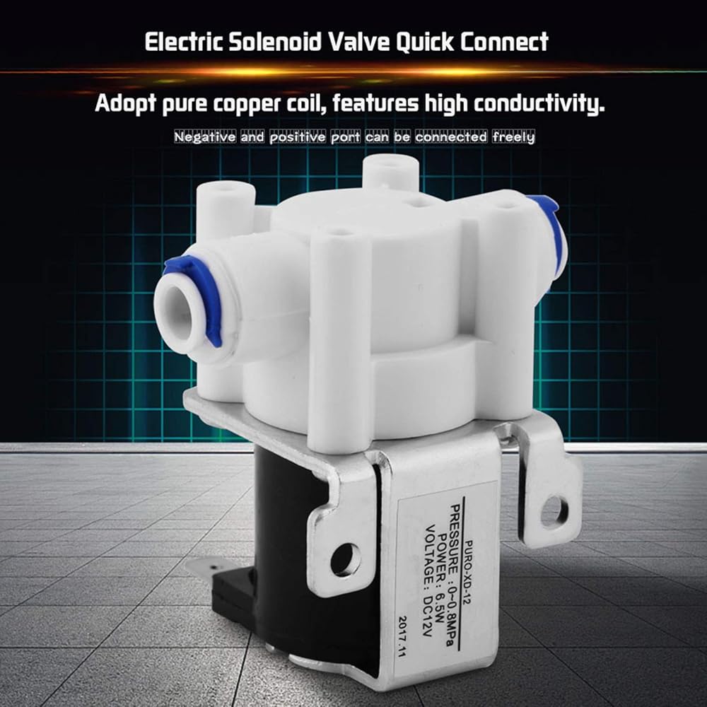Adopt pure copper coil, features high conductivity. Suitable for 1/4 inch tube. Perfect valve for water purifier. The arrow indicates the direction of water flow. Negative and positive port can be connected freely.