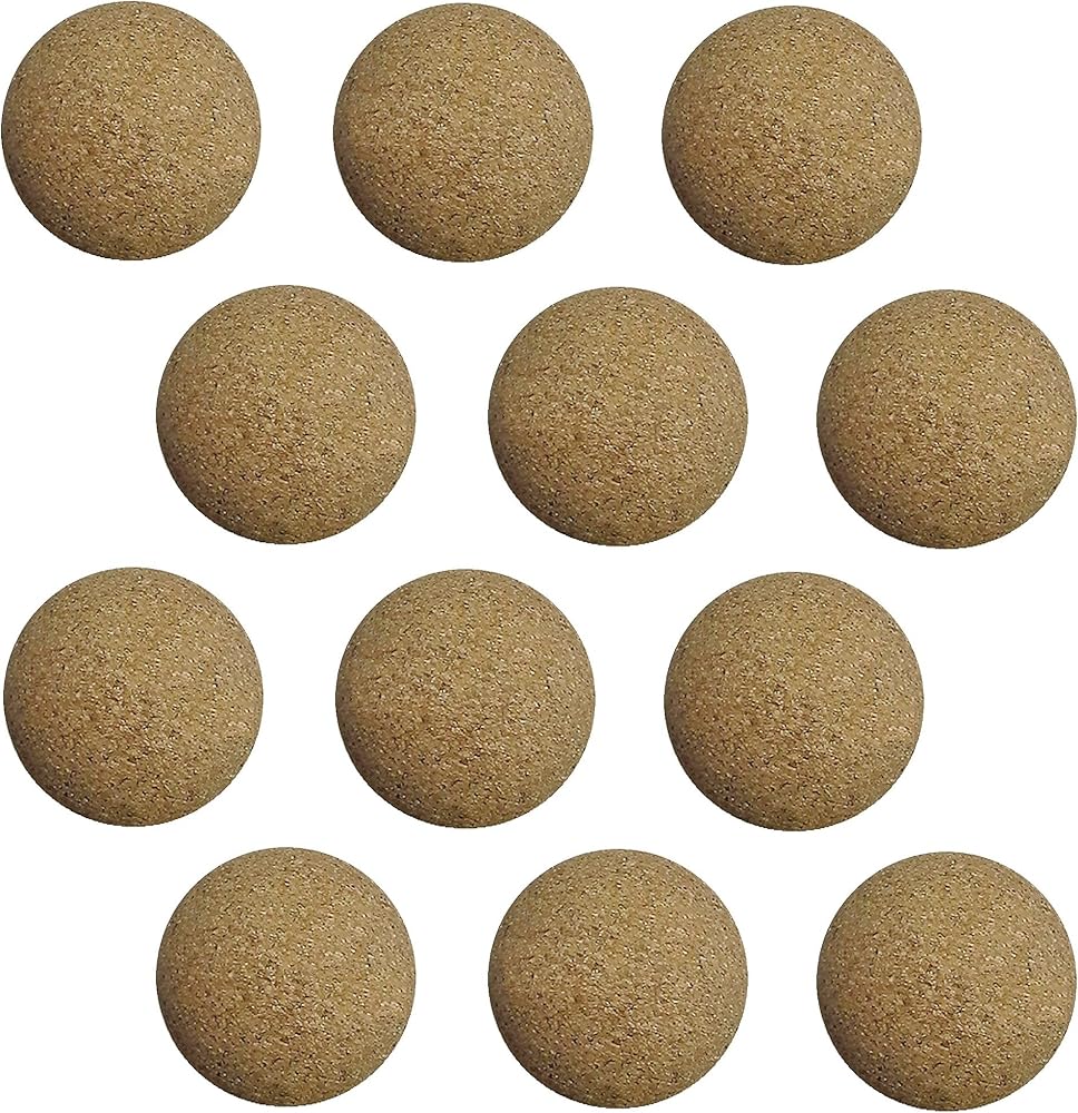 Natural wood colored cork table soccer balls. Preferred by advanced players, these balls are bouncier and have the surface grip that can bring your game to the ultimate level. These balls will work in any foosball table that requires a regulation full size ball.