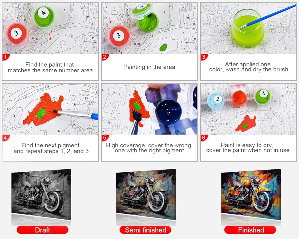 🎨 مجموعة الطلاء بالأرقام: تتضمن لوحة قماشية مقاس 40.64 سم × 50.8 سم (بدون إطار)، و3 فرش رسم، ومجموعة واحدة من ألوان صبغة الأكريليك وعينة من الصورة. ستجعلك مجموعات الطلاء بالأرقام تشعر بالسحر والمرح فن.