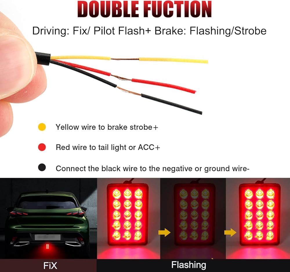 • ⭐ترقية جديدة وأضواء خلفية عالمية - يحتوي ضوء الفرامل طراز MIHAZ F1 بمظهر مستطيل فريد على 15 مصباح LED فائق السطوع ويلعب دورًا تحذيريًا أفضل أثناء القيادة من غيره. كما أن الضوء الخلفي عالمي ومتوافق مع السيارة وسيارات الدفع الرباعي والدراجات النارية وما إلى ذلك.