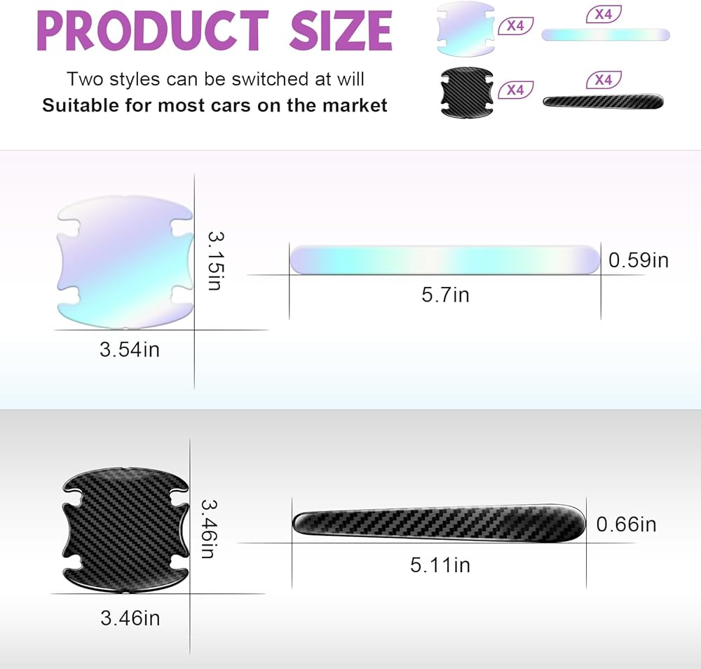 🥰مجموعة متنوعة من الخيارات: تتضمن العبوة 4 أوعية أبواب ملونة مبهرة + 4 أشرطة لمقبض الباب، و4 أوعية أبواب من ألياف الكربون السوداء + 4 أشرطة ممتصة للصدمات لمقبض الباب. متوفر بلونين وأنماط، مما يضمن لمسة شخصية لمظهر سيارتك.