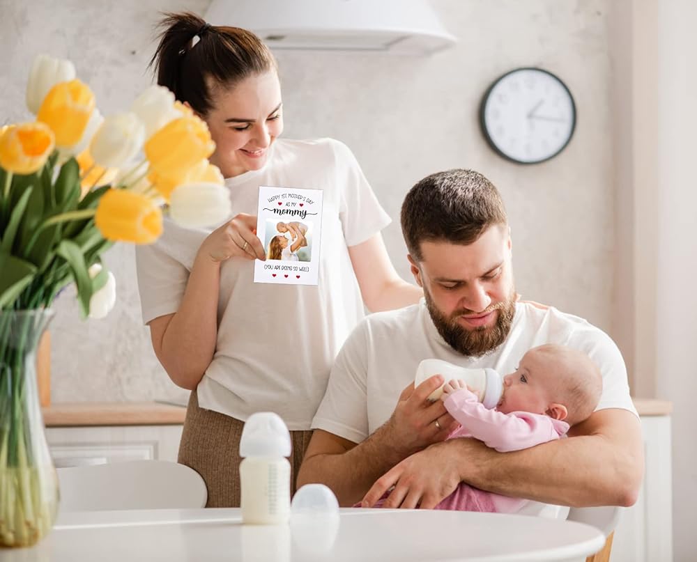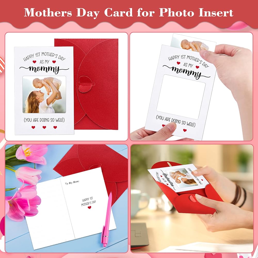❤️️【First Mothers Day Cards for Personalized Photo】: Picture frame design that you can insert personalized photo from the top of this mothers day card, fits for about 2.5"x 3" photo.