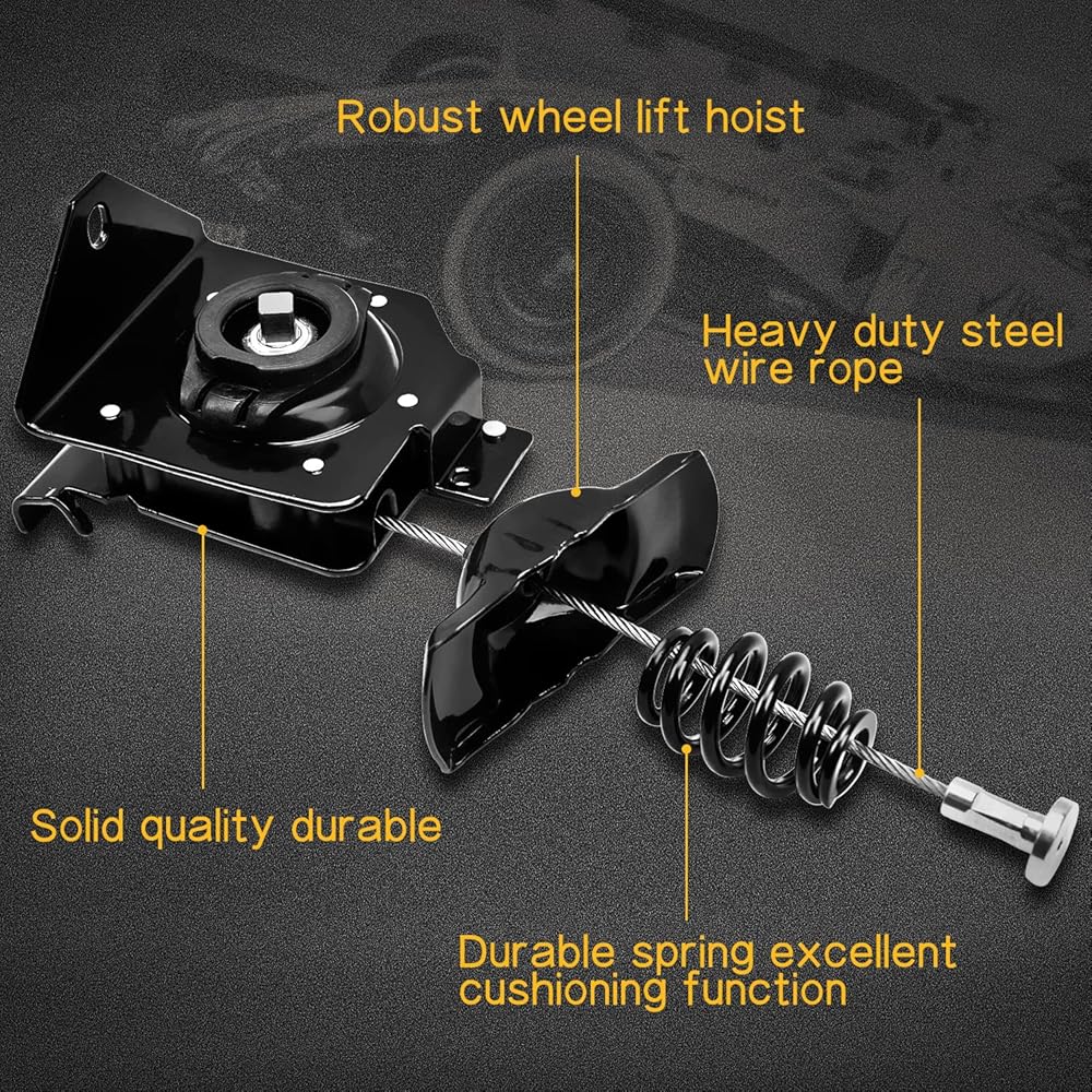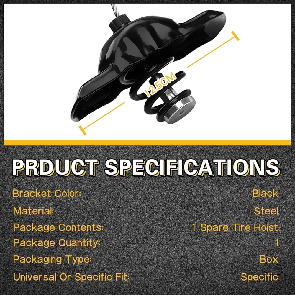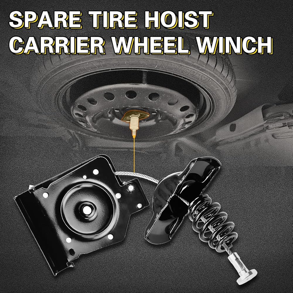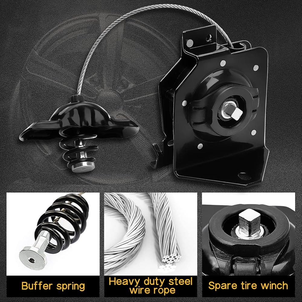 【جودة موثوقة】تستخدم رافعة الإطارات الاحتياطية تعزيزًا سميكًا لتحسين قوة الشد؛ تدابير متعددة مضادة للصدأ على سطح الونش، تعمل على إطالة عمر خدمة المنتج لضمان سلامة قيادة السيارة