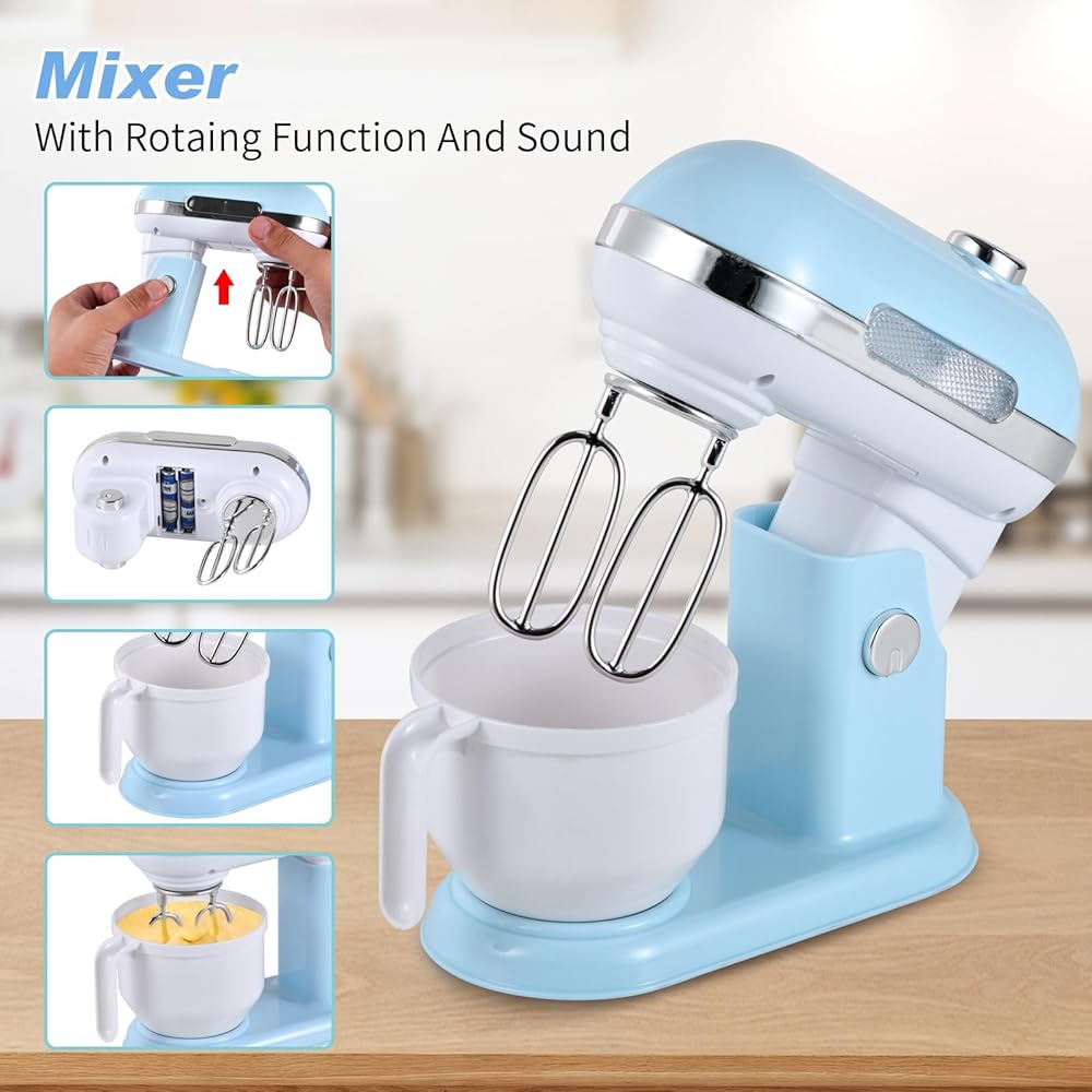 【إكسسوارات مطبخ لعب واقعية ومرح حقيقي】: تم تصميم إكسسوارات مطبخ اللعب لدينا بميزات واقعية تضيف لمسة من الواقعية إلى اللعب الخيالي، مما يجعلها أكثر إثارة وممتعة. تقوم آلة صنع القهوة بتوزيع الماء، وتخرج المحمصة الخبز المحمص، ويدور الخلاط فعليًا، مما يوفر متعة لا نهاية لها لطفلك.