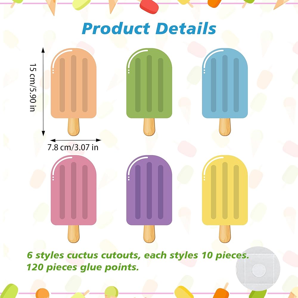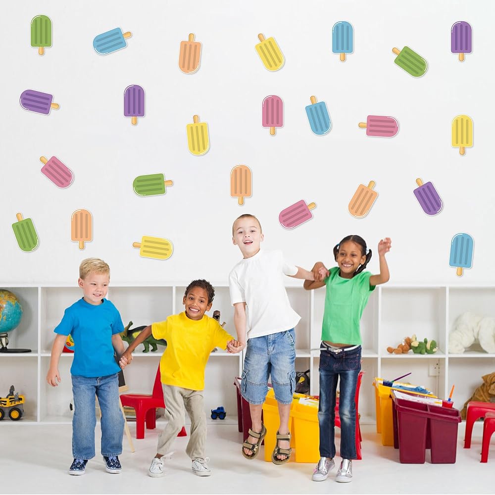 Ice cream cutouts are made of cardboard with smooth surface, wonderful and moisture proof, reusable and will last a long time. These colorful ice cream cut outs will be great on your classroom.