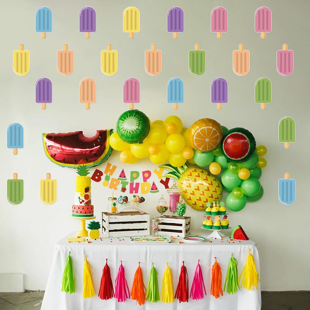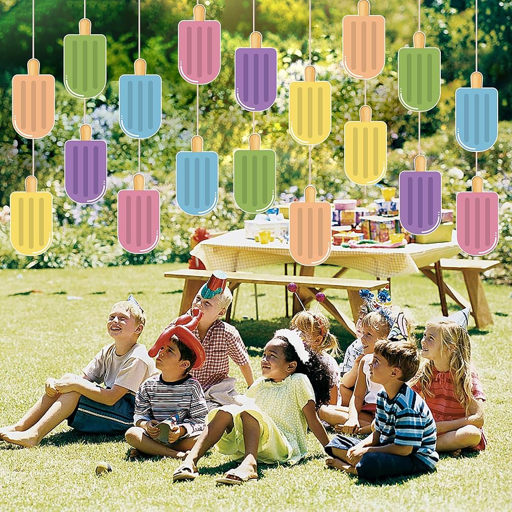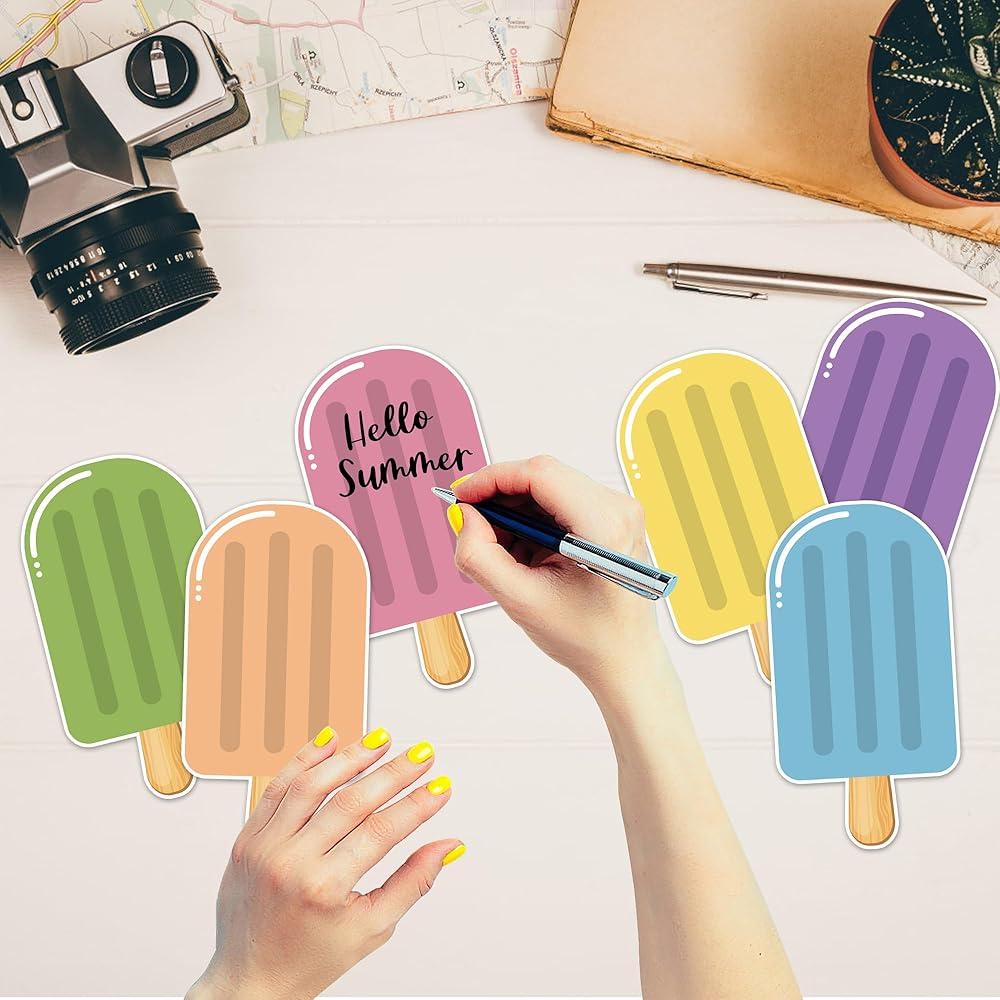 Ice cream paper cut outs set contains 6 colors in yellow, green, orange, purple, rose red, and blue, cool and delicate, which will create joyful festive atmosphere for summer.