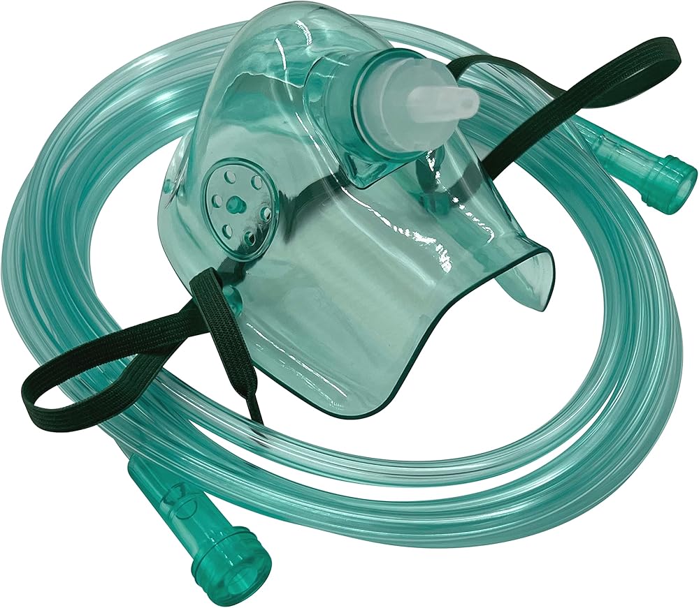 5 individually wrapped adult size medium concentration oxygen masks with 6.8 feet of crush resistant tubing