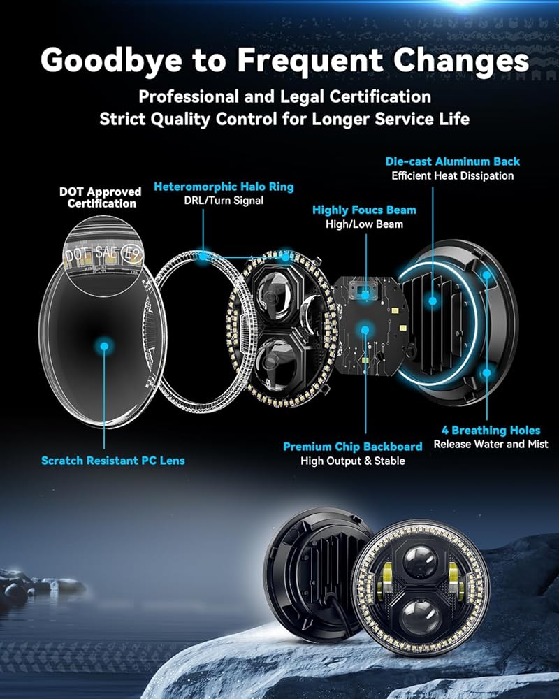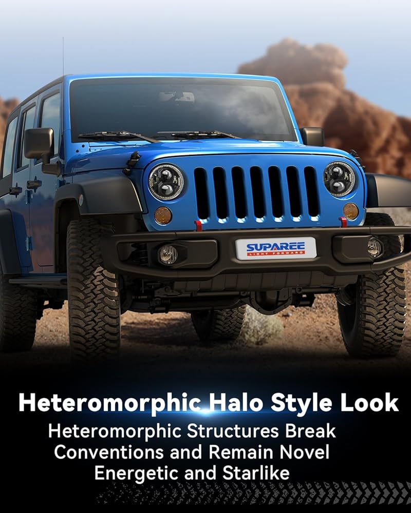 【رؤية أفضل للقيادة】تزيد الهالة غير المتجانسة من مصابيح جيب رانجلر مقاس 7 بوصات من منطقة الإشعاع أكثر من أي هالات تقليدية أخرى، ولكنها لا تزال تحافظ على الضوء الموحد دون ترك أي بقع سوداء، وبالتالي توفر رؤية قيادة أكثر إشراقًا وأوسع وأكثر وضوحًا.
