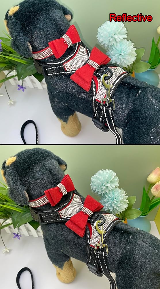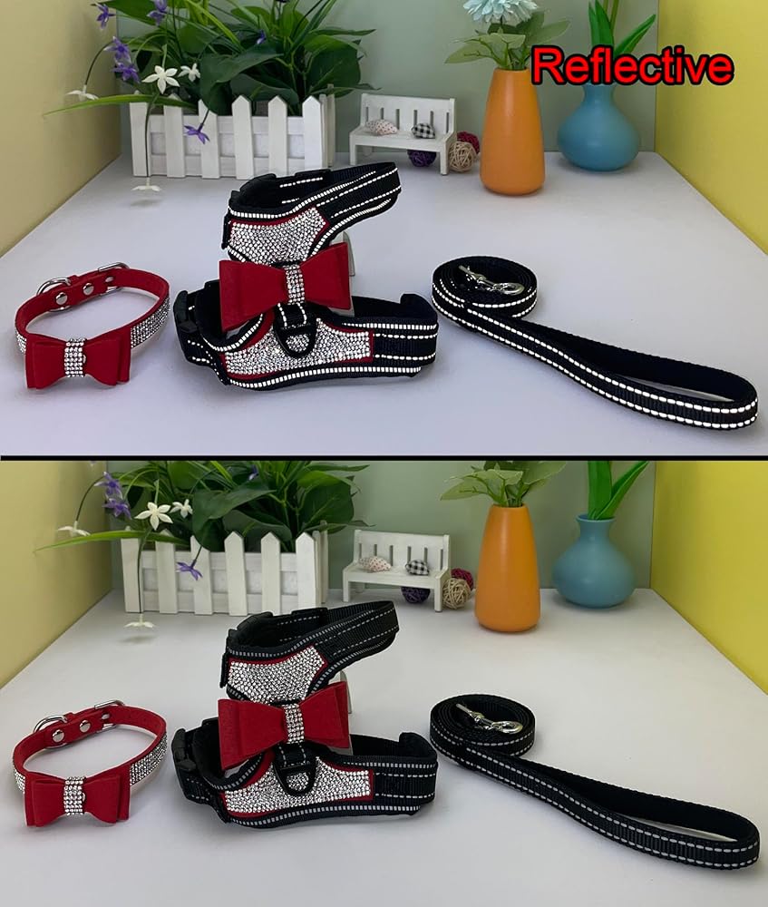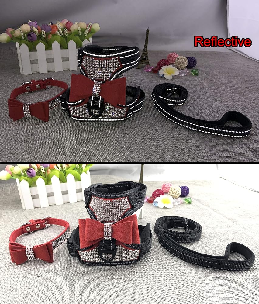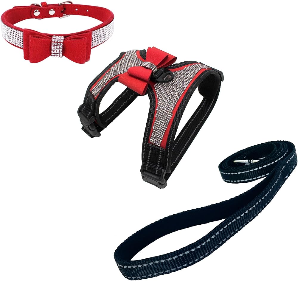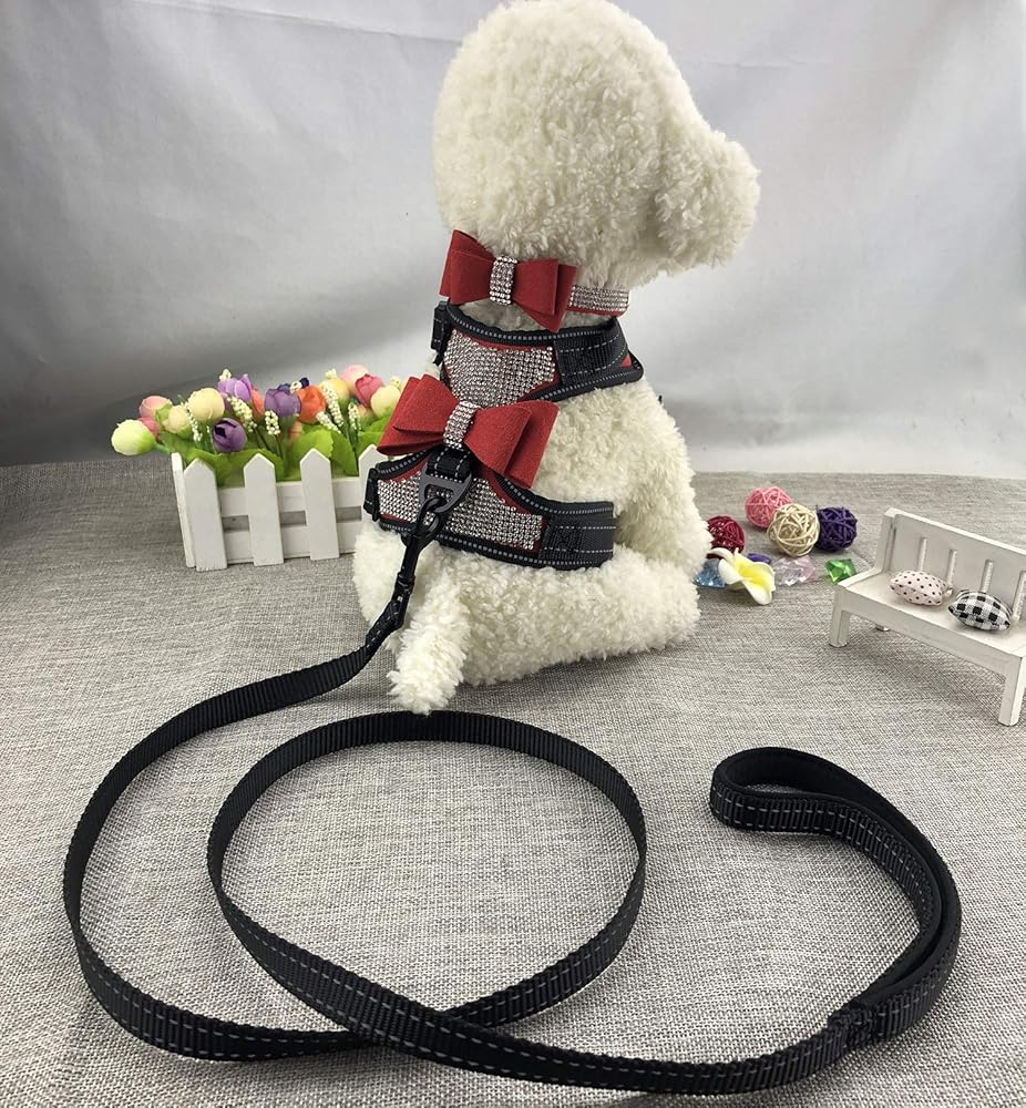 Item: Newtensina 3pcs Bow Ties Bling Cute Dog Harness and Dog Collar with Lead for Dog