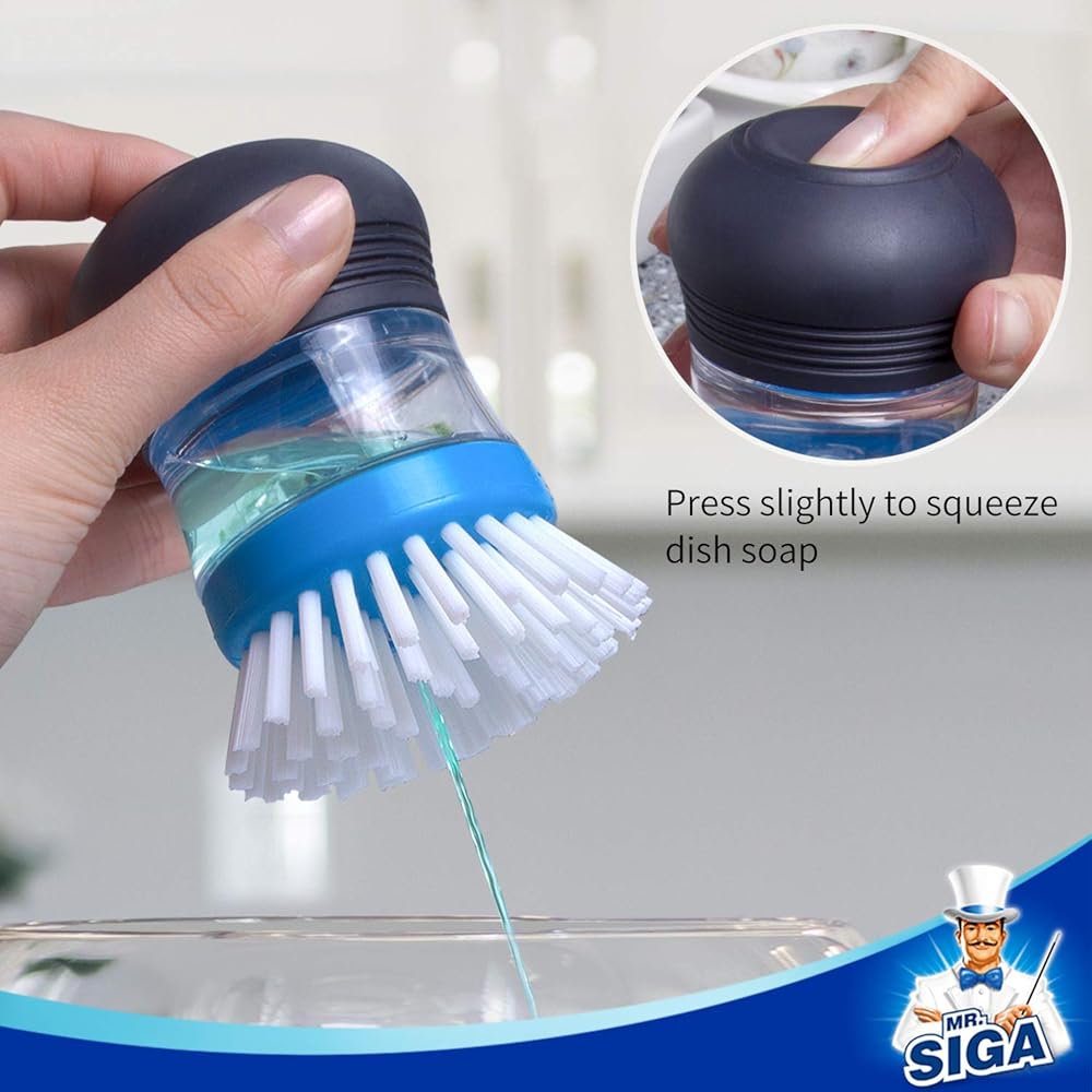 COMFORTABLE GRIP - The contoured shape fits right in your palm, also covered with TPR material which is non slip even when wet and soapy, so you don't need to apply much pressure. The body can be easily filled with your favourite dish soap.
