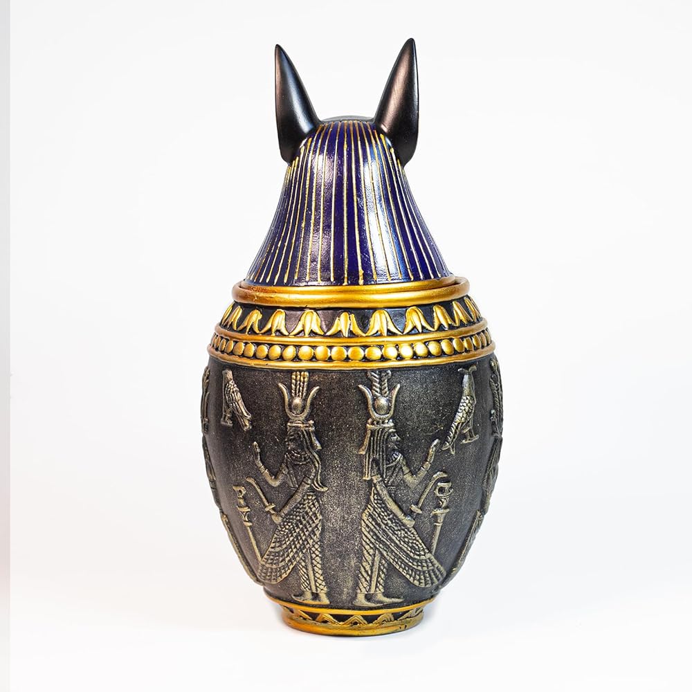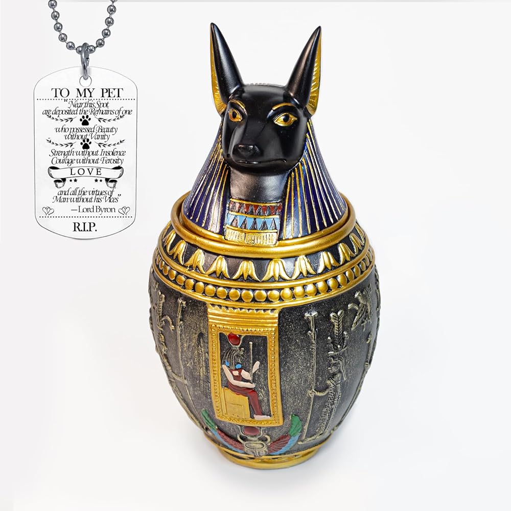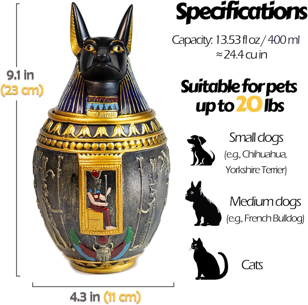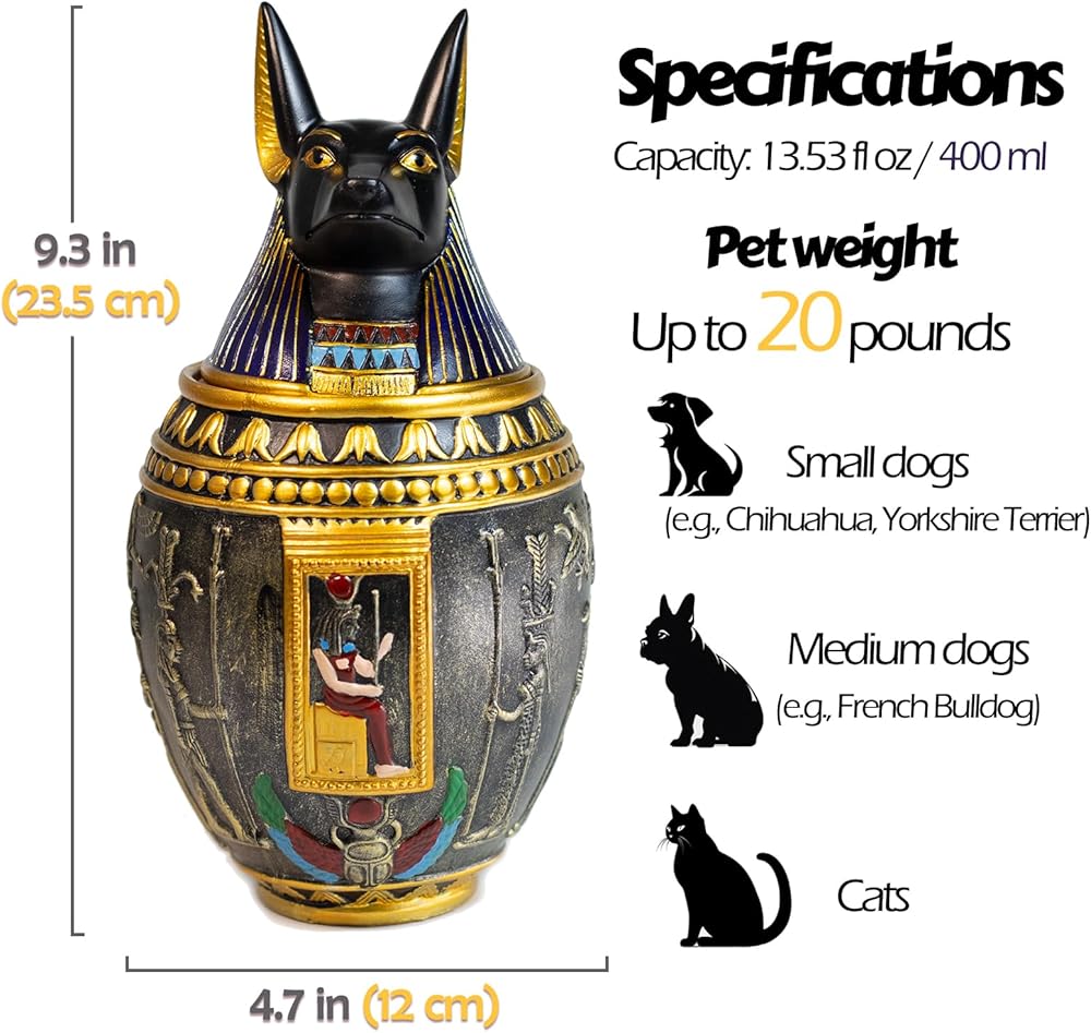🐾 Versatile: It can serve as an pet urn for dog or hold the ashes of cats or other animals. Because of its Egyptian-style artifact, antique design, it can also be used as a home decoration, a jar for storing small items, and more.