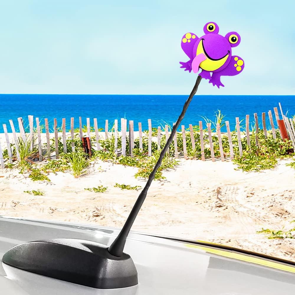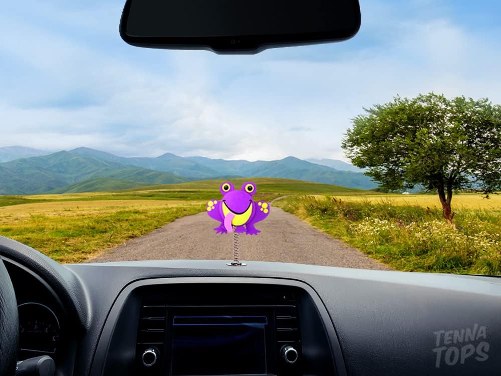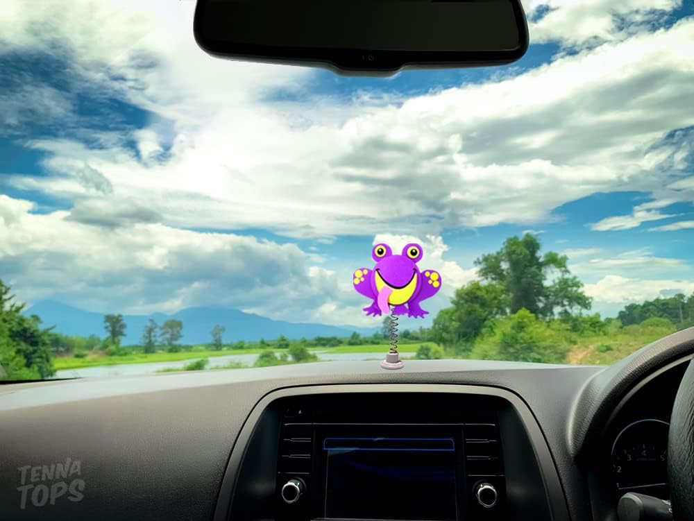 غطاء هوائي للسيارة على شكل ضفدع لطيف من Tenna Tops/معلقة مرآة أوتوماتيكية/ملحق لوحة القيادة (أرجواني)
