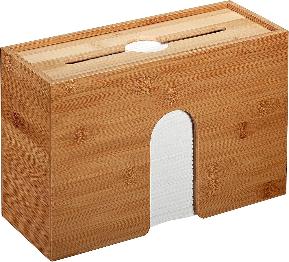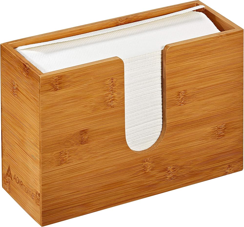 Bamboo Paper Towel Dispenser 4.8" x 11.6" x 7.8" - Wall Mount or Countertop for Multifold Hand Napkins - Bathroom, Kitchen, Home or Commercial Use (Bamboo)