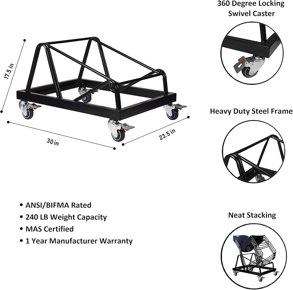 VERSATILITY: For use with either the OEF850-CL series or any sled based stack chair with the same dimensions. The chairs stack super easily and safely, making for easy and safe maneuverability.