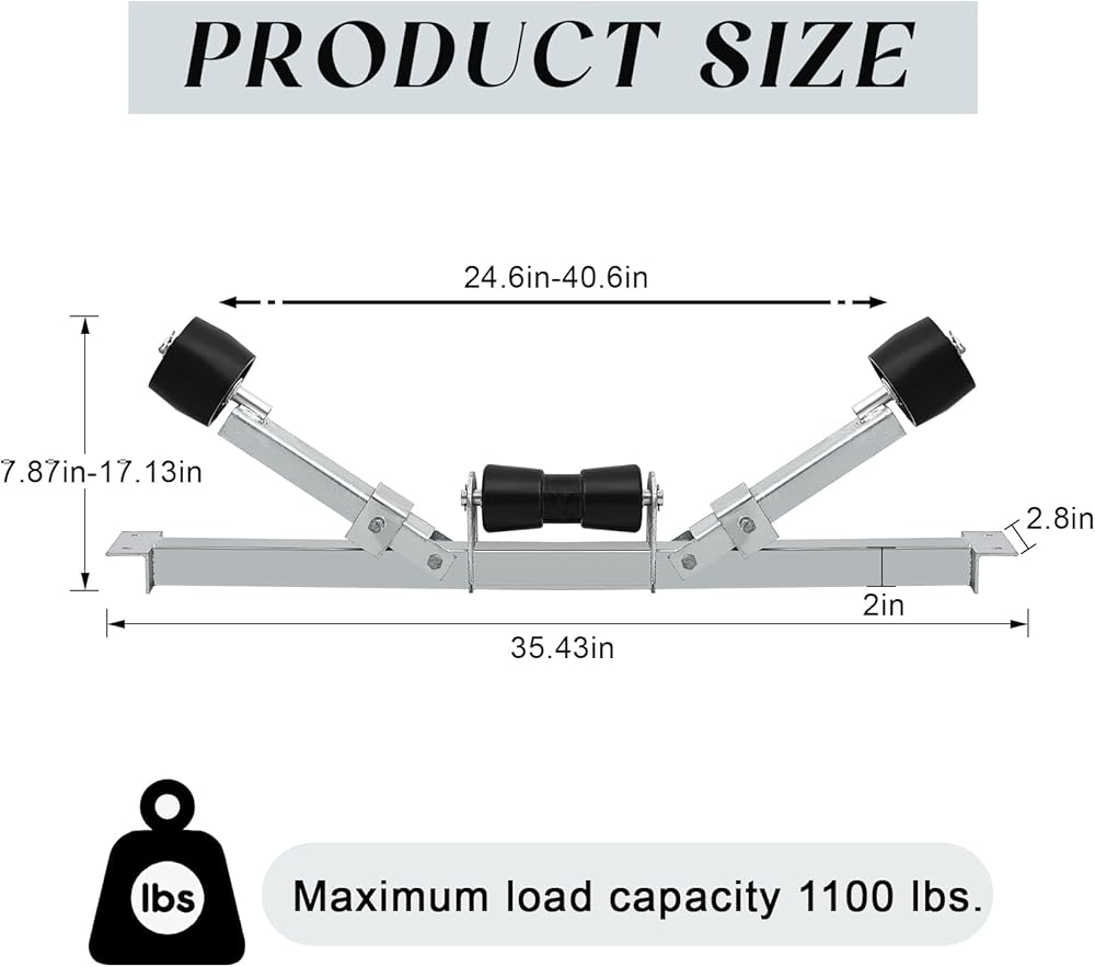 Good Load Capacity: boat trailer parts have a maximum load capacity of about 2204 lbs, ideal for boats of various sizes; our bottom support bracket for boat trailer guide is equipped with heavy rubber keel rollers for boats, which can help you to absorb road impacts during towing