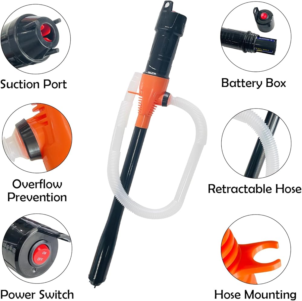 ترقية الطاقة: المضخة التي تعمل بالبطارية خفيفة الوزن وسهلة النقل، مع قوة معززة لضخ 2.2 جالون/8 لتر/9 كوارت في الدقيقة. طول الأنبوب 16 بوصة يناسب 3 إلى 5 جالون من السائل، وطول الخرطوم يصل إلى 2 قدم، وقطر أنبوب الشفط 1 بوصة لمعظم عمليات الضخ.