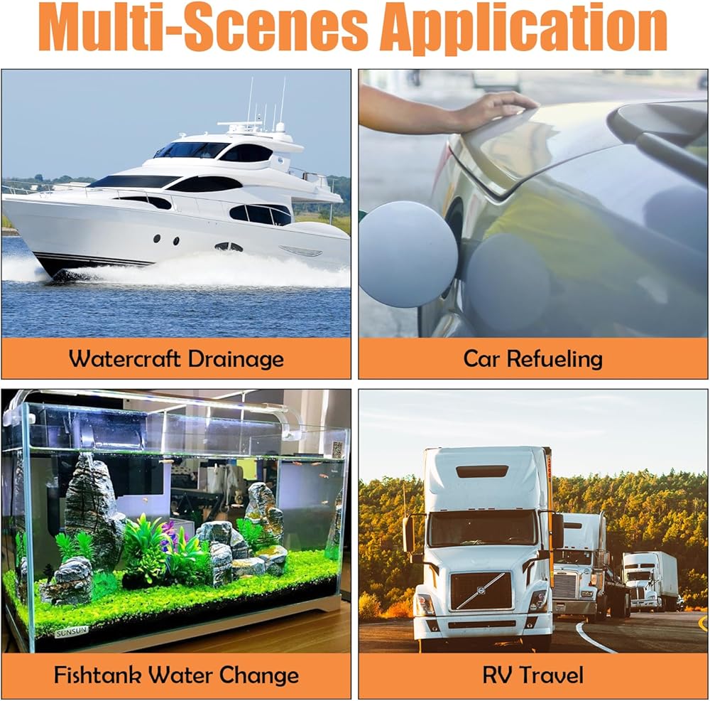 【تطبيقات متعددة】تستخدم على نطاق واسع في السيارات وأحواض السمك والجراجات والأقبية والحمامات والمتاجر والساحات. رائعة لضخ الكيروسين والزيت الخفيف ووقود الديزل والمبيدات الحشرية الكيميائية والتولوين والمذيبات الخفيفة والبنزين والمنظفات والصابون ومضاد التجمد والماء (المياه غير الصالحة للشرب).