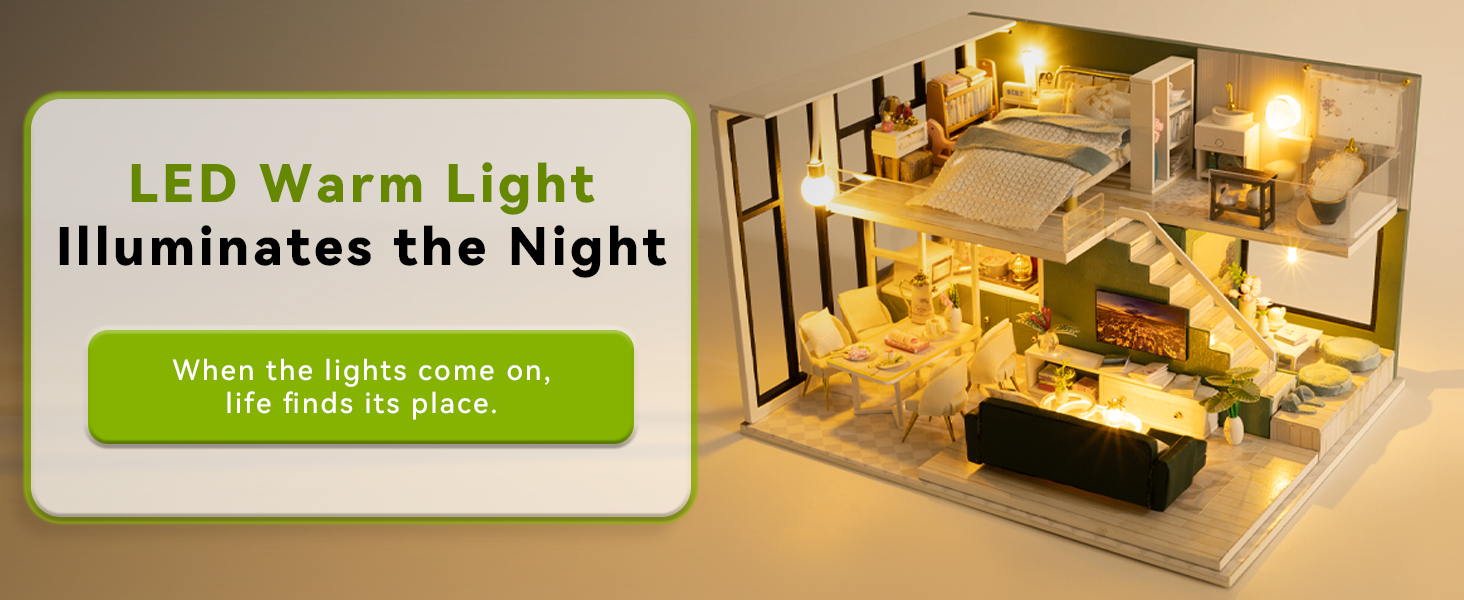 تزيين وتجميع: مجموعة بيت الألعاب المصغرة هذه التي يمكنك صنعها بنفسك تشبه المنزل الحقيقي مع زخرفة إضاءة LED، وهي هدية مثالية لأحبائك أو لنفسك. إلى جانب ذلك، يمكنك إعادة تزيين بيت اللعب الخشبي هذا بإبداعك أو إضافته إلى مجموعتك.