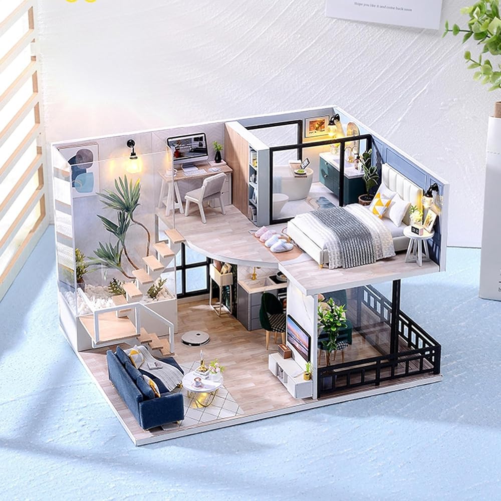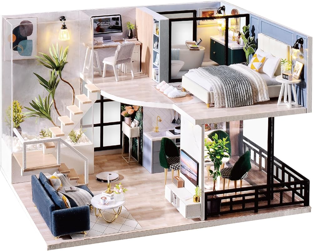 مجموعة بيت الدمى التي يمكنك صنعها بنفسك: تم تصميم المنزل الصغير بذكاء وبجودة عالية، وتم قطع الإكسسوارات بدقة وتناسب تمامًا. تتضمن كل ما تحتاجه: افتح العبوة للعثور على أثاث صغير لطيف وطاولة صغيرة ووسائد والعديد من الملحقات الأخرى. تأتي مع ضوء خاص بها وغطاء بلاستيكي يمنع بيت اللعبة من الاتساخ.