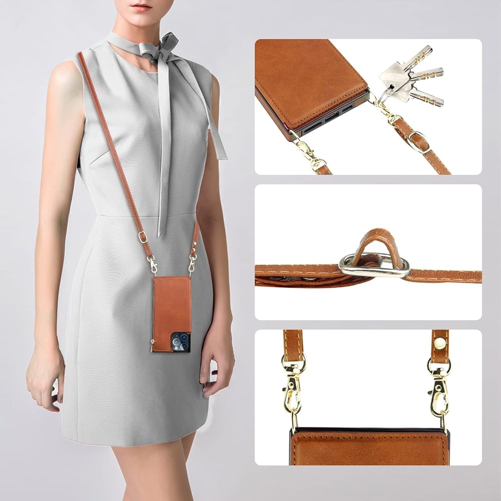 【حبل قابل للتعديل والفصل】مع حزام كتف قابل للتعديل ومضاد للضياع، يسمح لك حامل البطاقة الواقي الموجود على الظهر بتعليق هاتفك على رقبتك عندما لا تكون يديك مشغولتين. بالإضافة إلى ذلك، فإن حزام الجسم المتقاطع قابل للإزالة ويمكن خلعه بسهولة.
