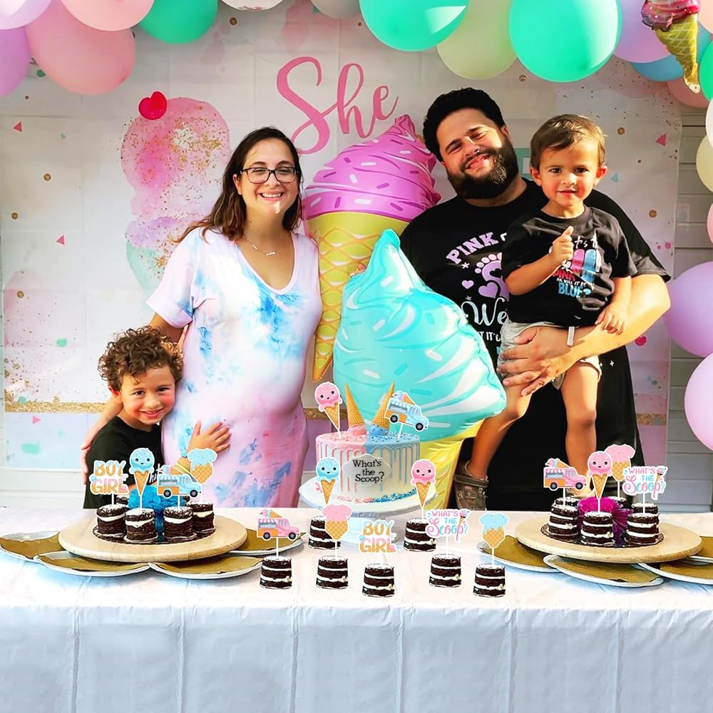 Wide Application: The pink and blue what's the scoop party decorations can be widely applied for ice cream themed gender reveal, baby shower, he or she parties, pregnancy announcement celebration, newborn baby celebration party and more.