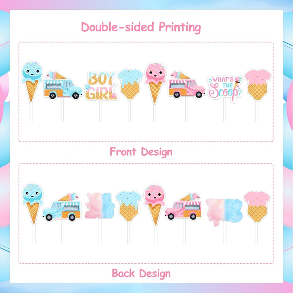 Premium Quality: The ice cream gender reveal cupcake toppers are made of paper. They are safe, sturdy, reliable and easy to maintain. It stays in good condition and you can easily insert them into the cupcakes.