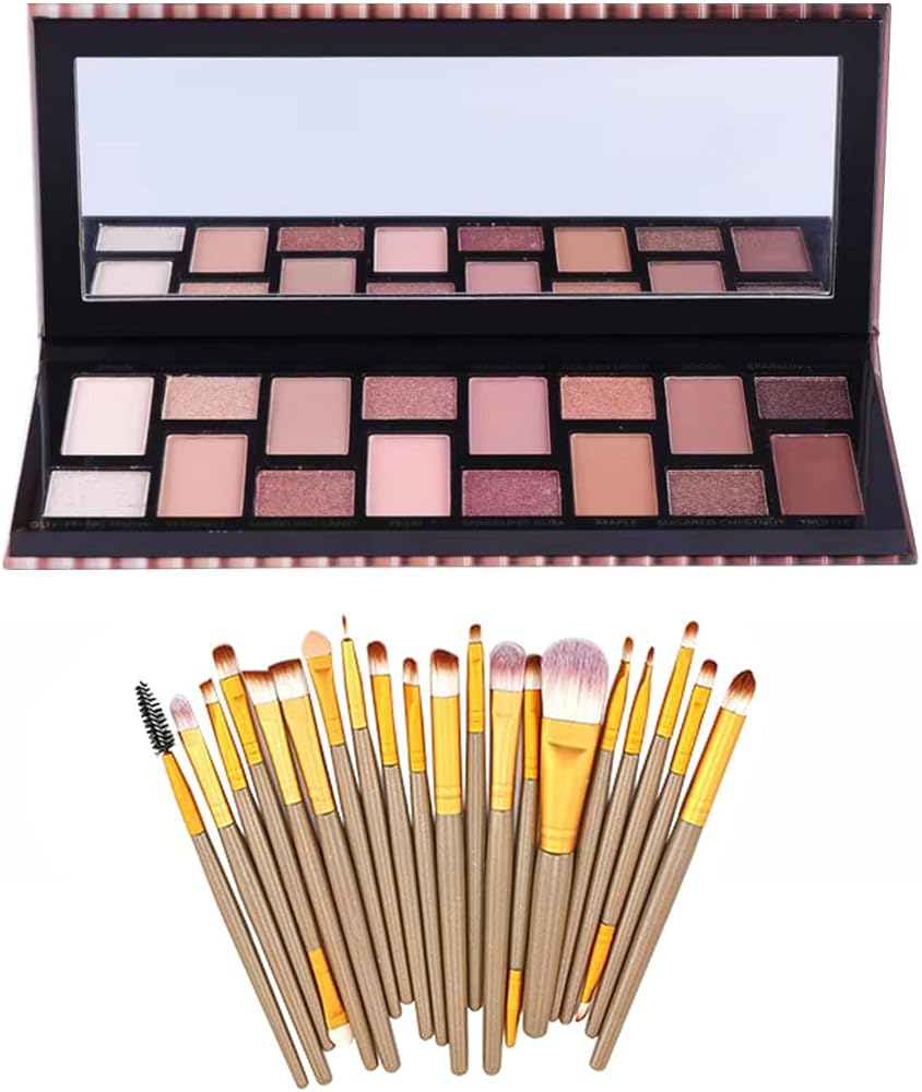 لوحة ظلال عيون Saibinuo مكونة من 16 لونًا + 20 قطعة من فرش الماكياج، مجموعة من فرش الماكياج ذات صبغة عالية من Nudes اللامعة اللامعة غير اللامعة، ظلال عيون سموكي ناعمة صناعية، فرشاة مزج كريمية، مجموعة لوحة محايدة (16 درجة عالية الصبغة)