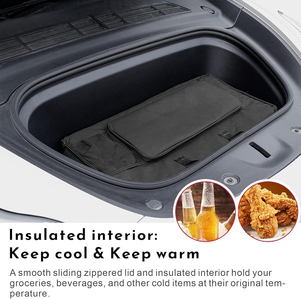 • يحافظ على درجة الحرارة: يتميز بغطاء بسحاب منزلق ناعم وجزء داخلي معزول، هذا الملحق Tesla Model 3 يحافظ على البقالة والمشروبات وغيرها من العناصر المبردة في درجة حرارتها الأصلية خلال أشهر الصيف، ودافئة خلال أشهر الشتاء.