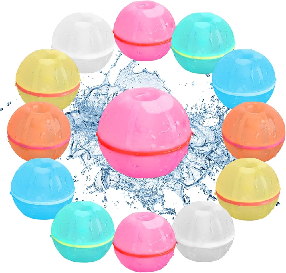 Sopco 12 PCS Reusable Water Balloons Quick Fill Self Sealing Magnetic Water Balls for kids Silicone Water Bomb for Swimming Pool Water Fight Game Summer Splash Fun Party Toys
